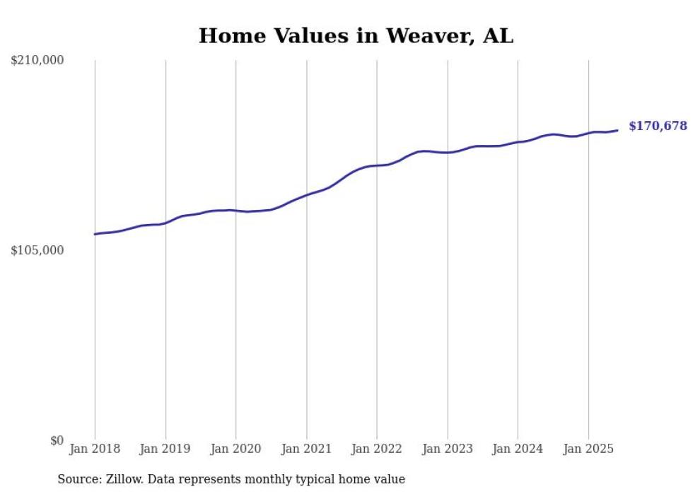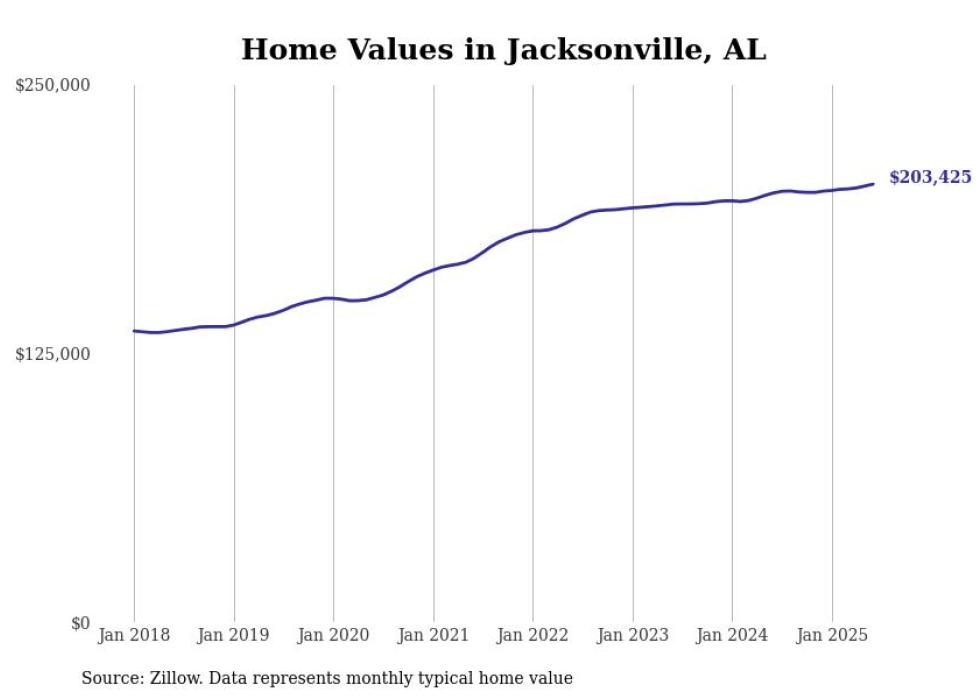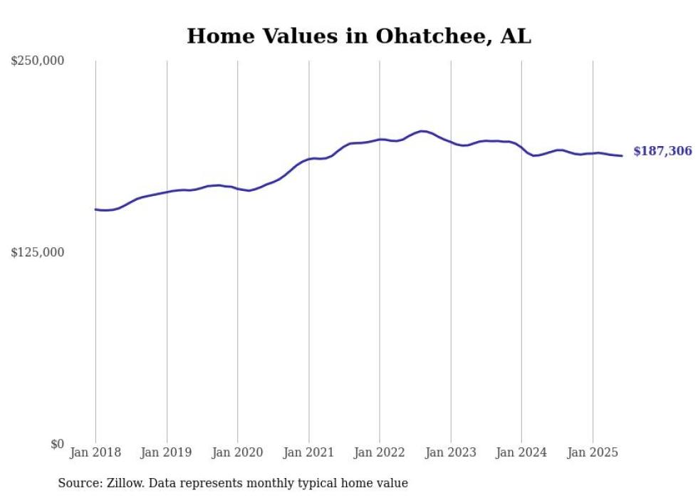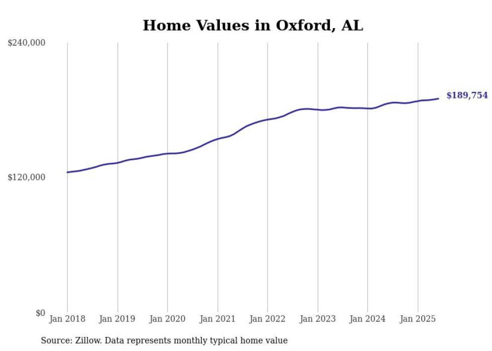 Stacker compiled a list of cities with the most expensive homes in the Anniston-Oxford, AL metro area using data from Zillow. Charts show the monthly typical home value since January 2018.