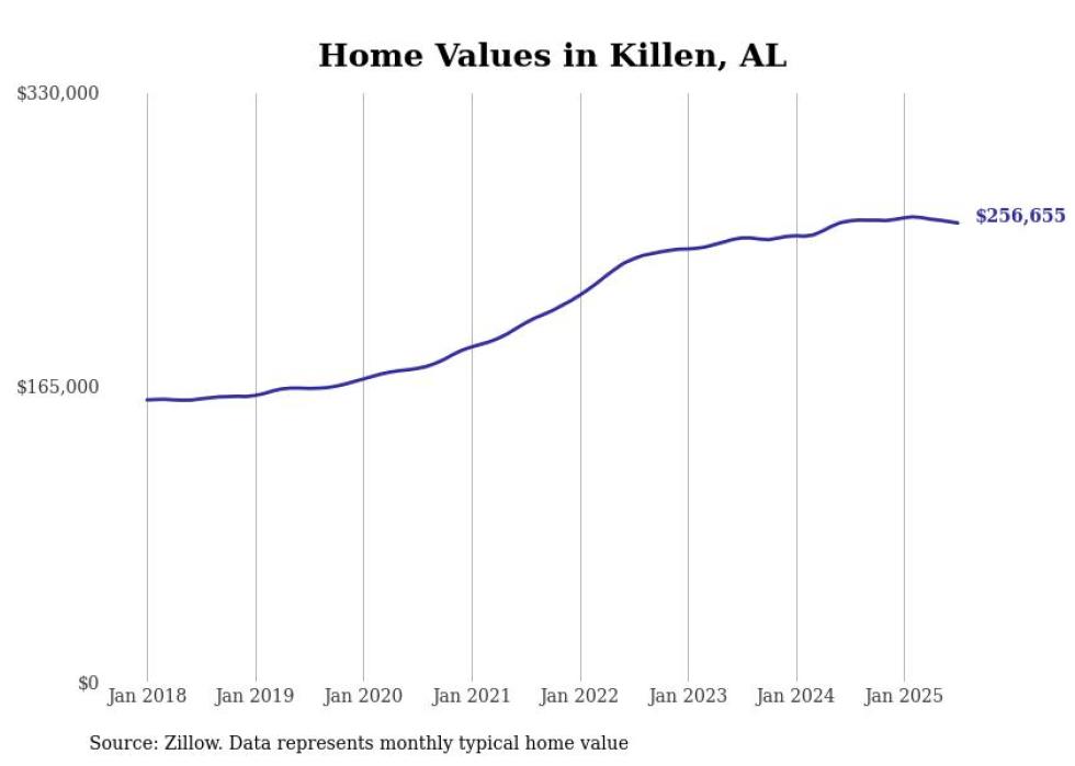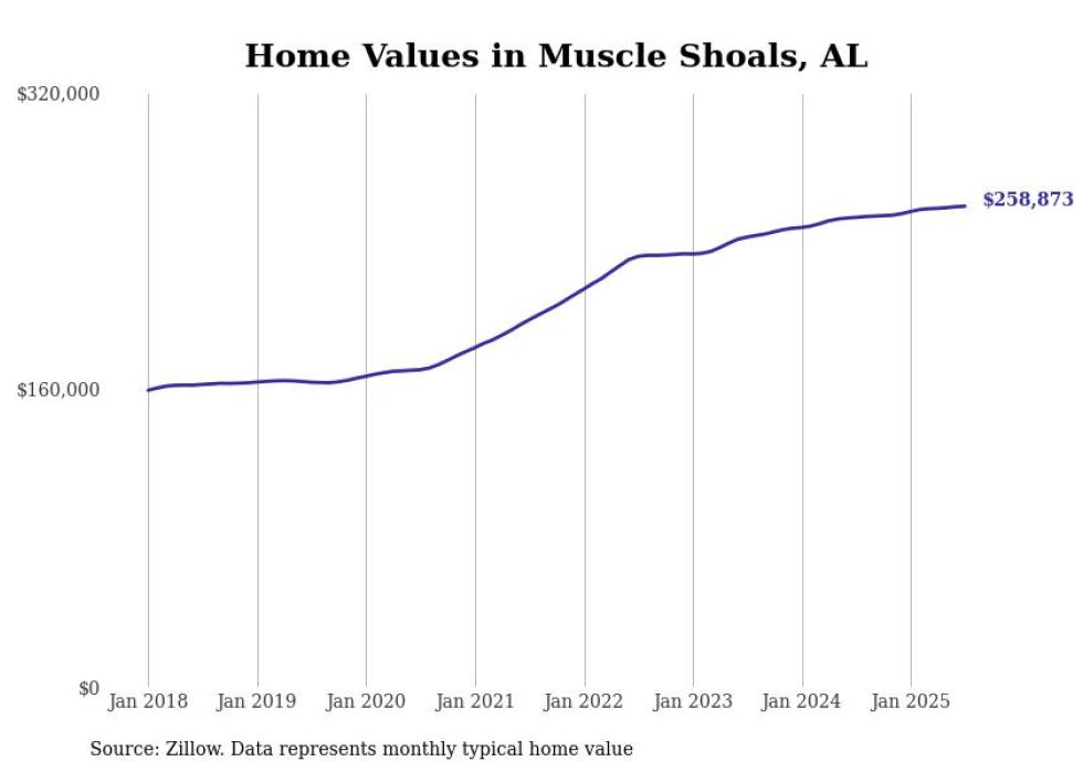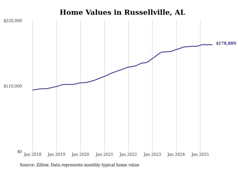 Stacker compiled a list of cities with the most expensive homes in the Florence metro area using data from Zillow. Charts show the monthly typical home value since January 2018. All 12 cities and towns with data available were included in the list.