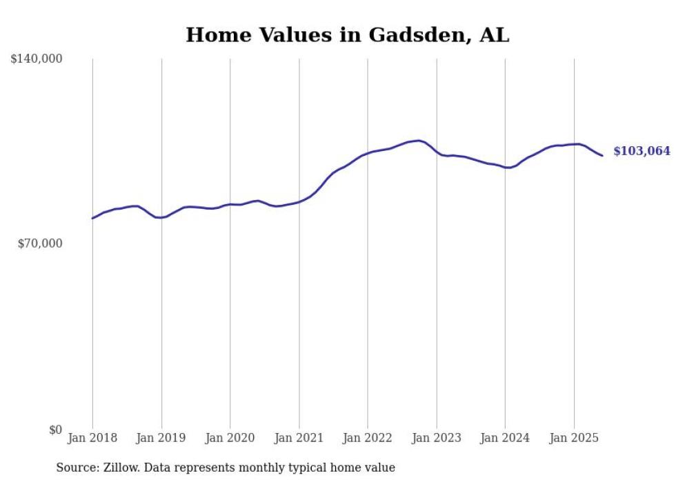 Stacker compiled a list of cities with the most expensive homes in the Gadsden, AL metro area using data from Zillow. Charts show the monthly typical home value since January 2018.