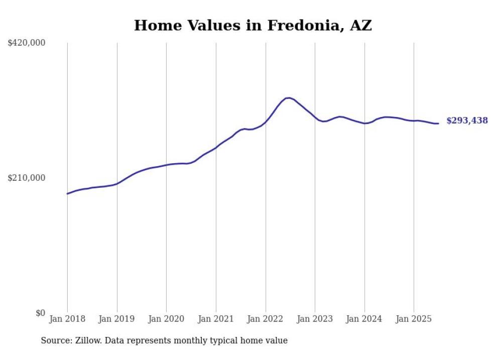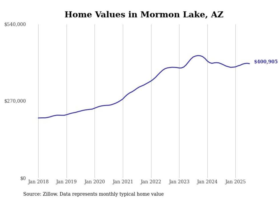 Stacker compiled a list of cities with the most expensive homes in the Flagstaff metro area using data from Zillow. Charts show the monthly typical home value since January 2018. All 10 cities and towns with data available were included in the list.