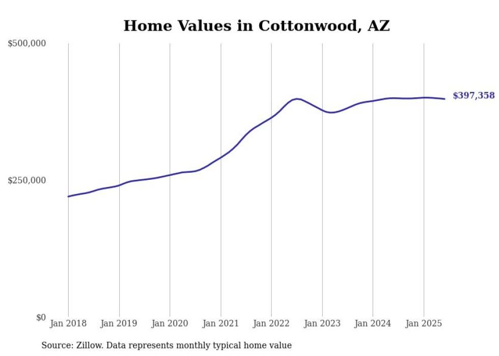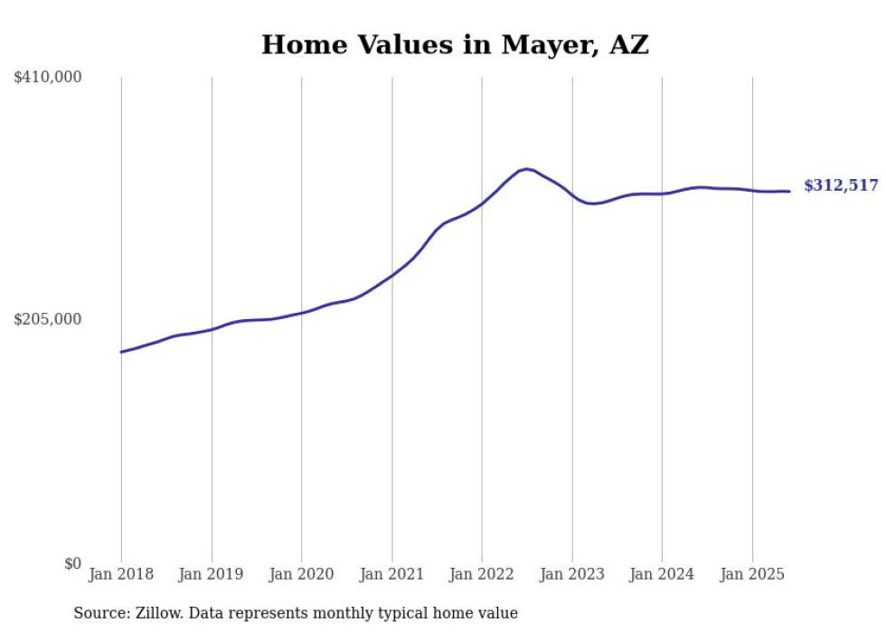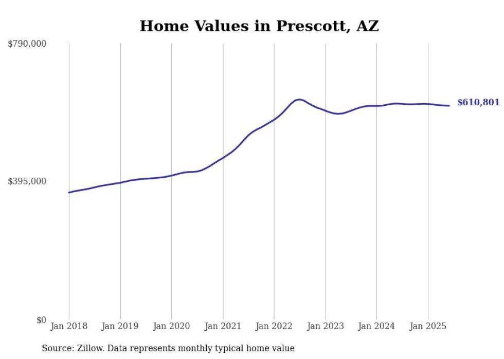 Stacker compiled a list of cities with the most expensive homes in the Prescott Valley-Prescott, AZ metro area using data from Zillow. Charts show the monthly typical home value since January 2018.