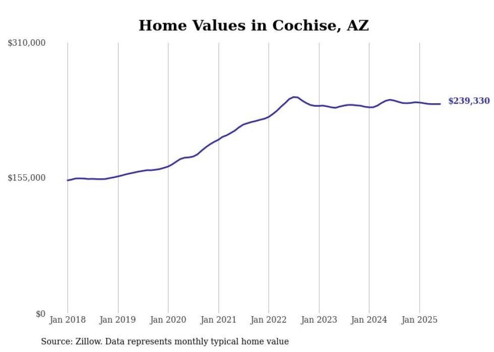 Cities with the fastest-growing home prices in the Sierra Vista metro area