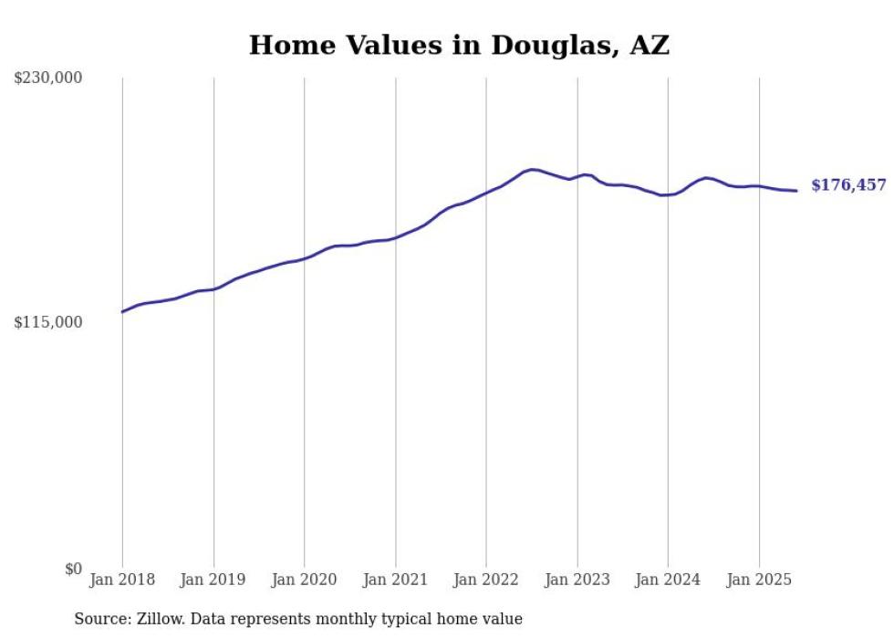 Stacker compiled a list of cities with the most expensive homes in the Sierra Vista-Douglas, AZ metro area using data from Zillow. Charts show the monthly typical home value since January 2018.