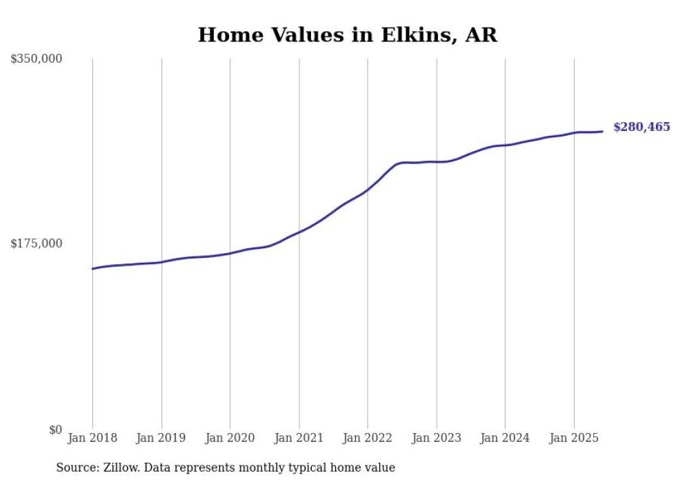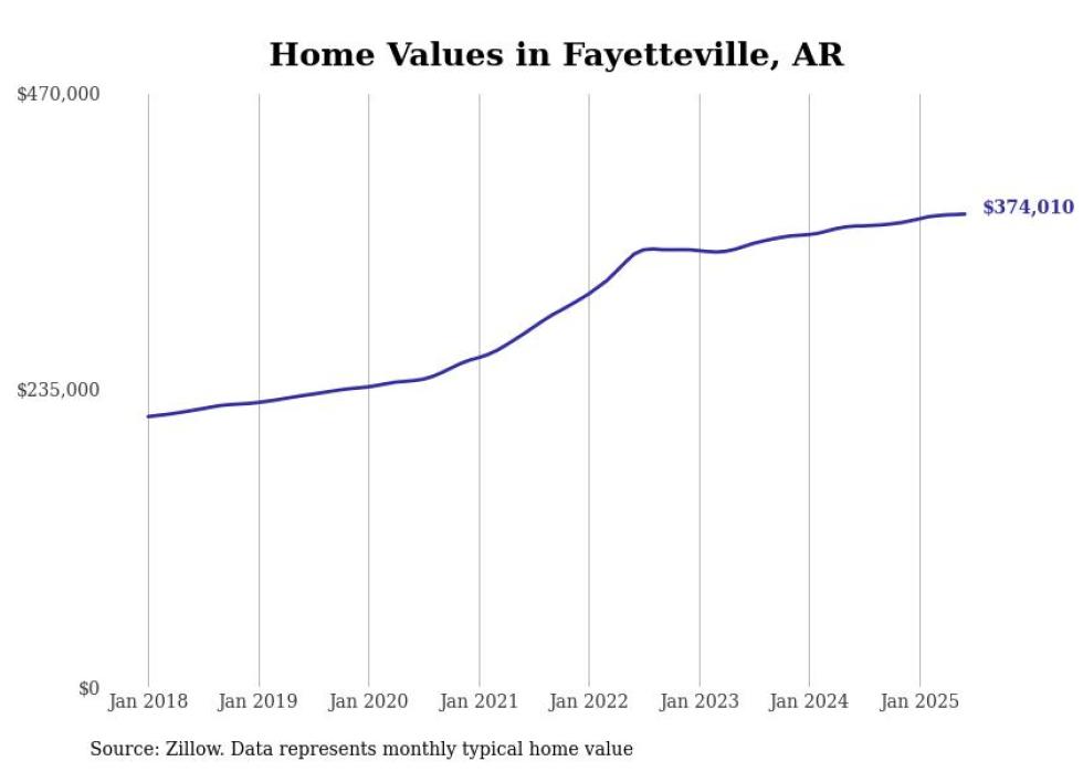 Stacker compiled a list of cities with the most expensive homes in the Fayetteville-Springdale-Rogers, AR metro area using data from Zillow. Charts show the monthly typical home value since January 2018.