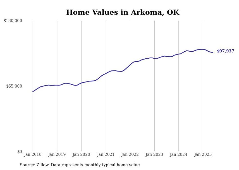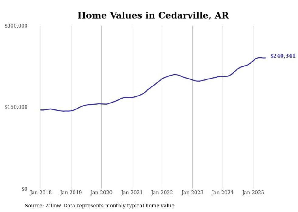 Stacker compiled a list of cities with the most expensive homes in the Fort Smith, AR-OK metro area using data from Zillow. Charts show the monthly typical home value since January 2018.