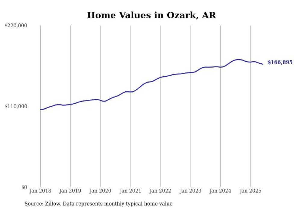 Cities with the fastest-growing home prices in the Fort Smith metro area