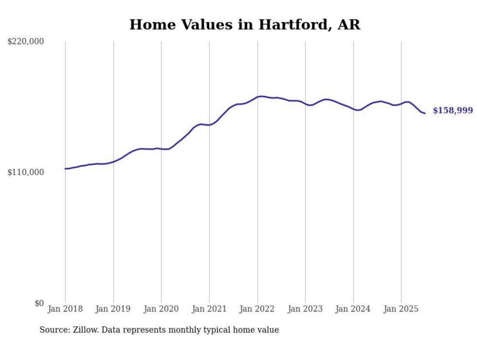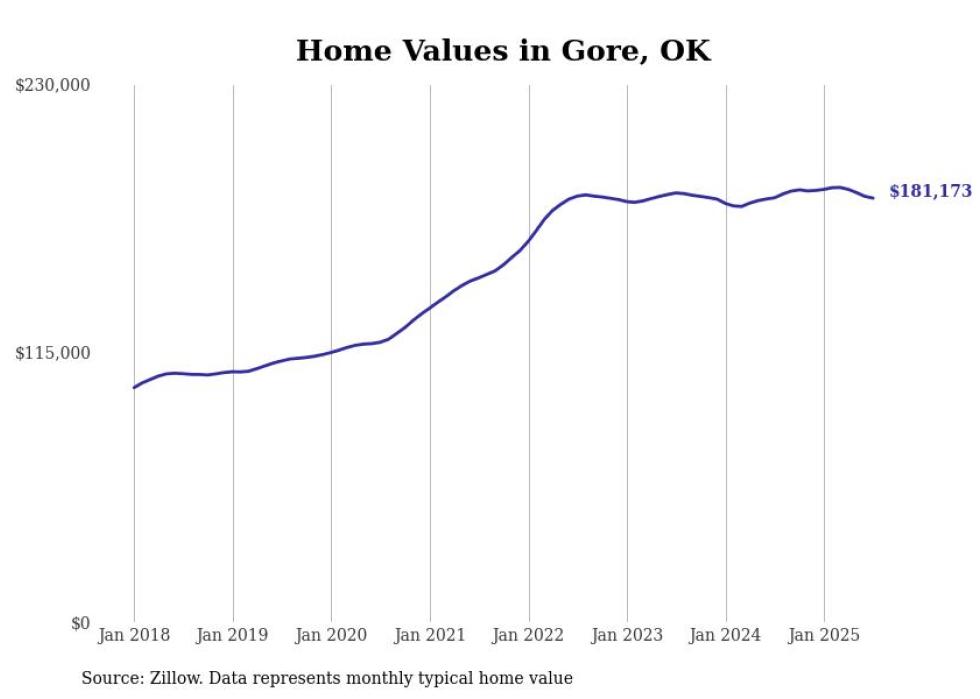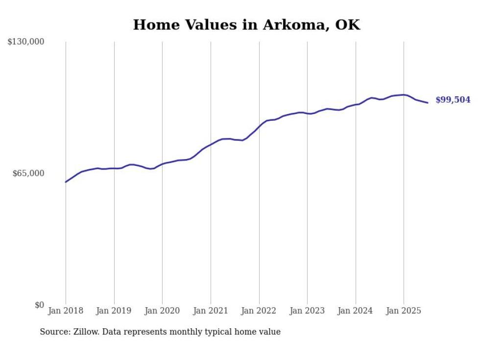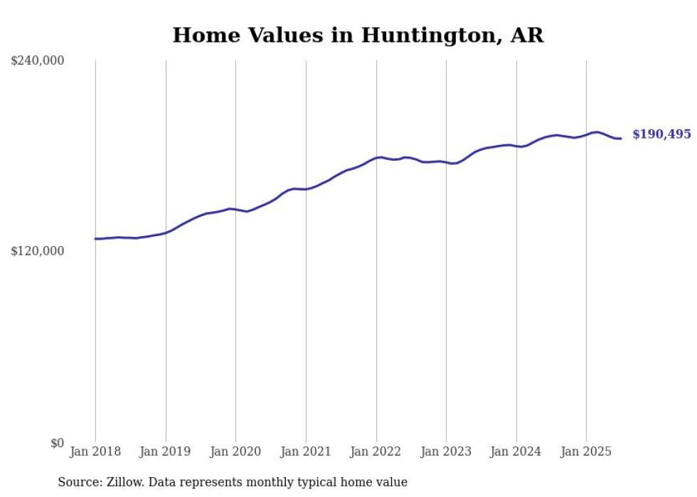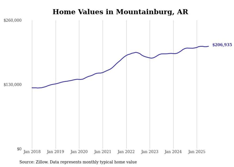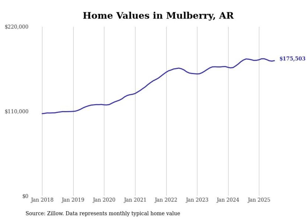 Stacker compiled a list of cities with the most expensive homes in the Fort Smith metro area using data from Zillow. Charts show the monthly typical home value since January 2018. All 24 cities and towns with data available were included in the list.