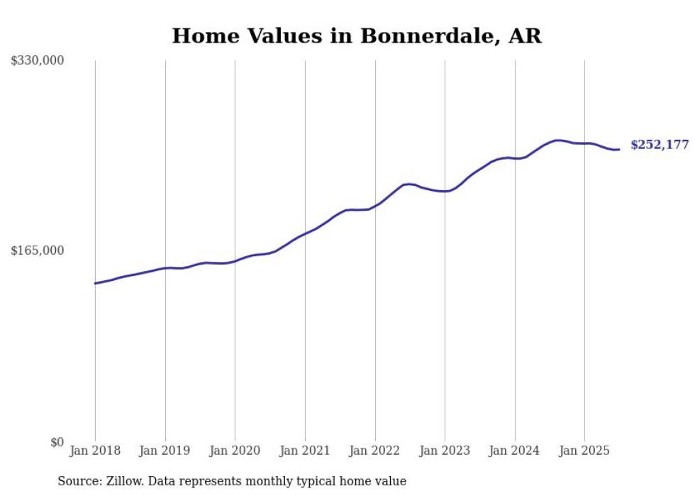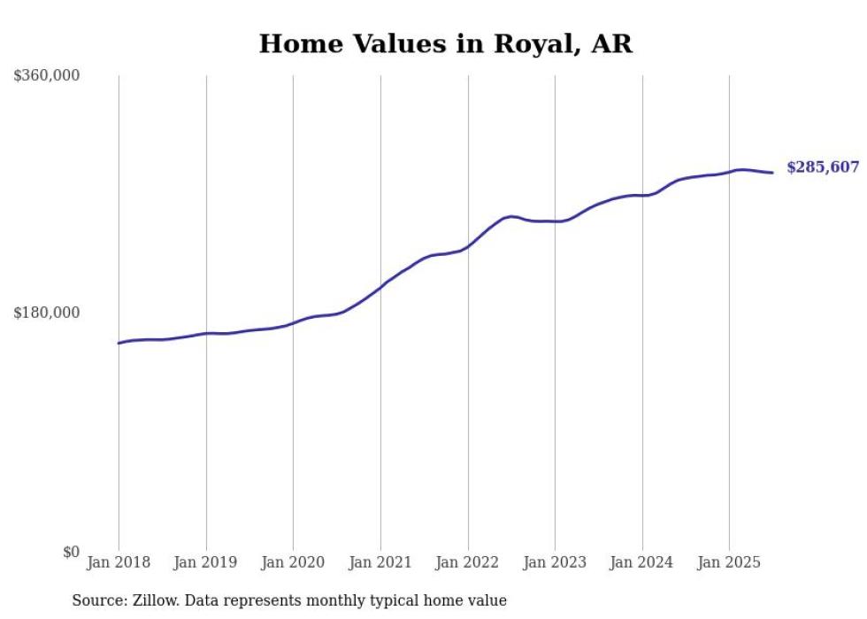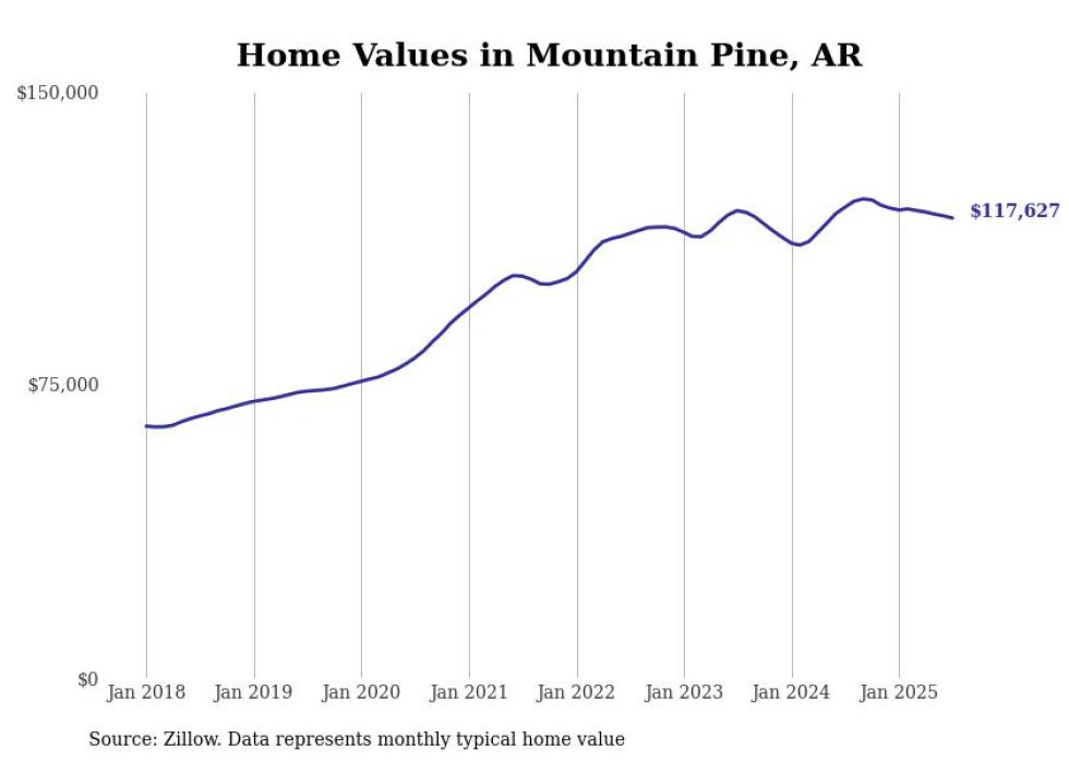 Stacker compiled a list of cities with the most expensive homes in the Hot Springs metro area using data from Zillow. Charts show the monthly typical home value since January 2018. All 7 cities and towns with data available were included in the list.