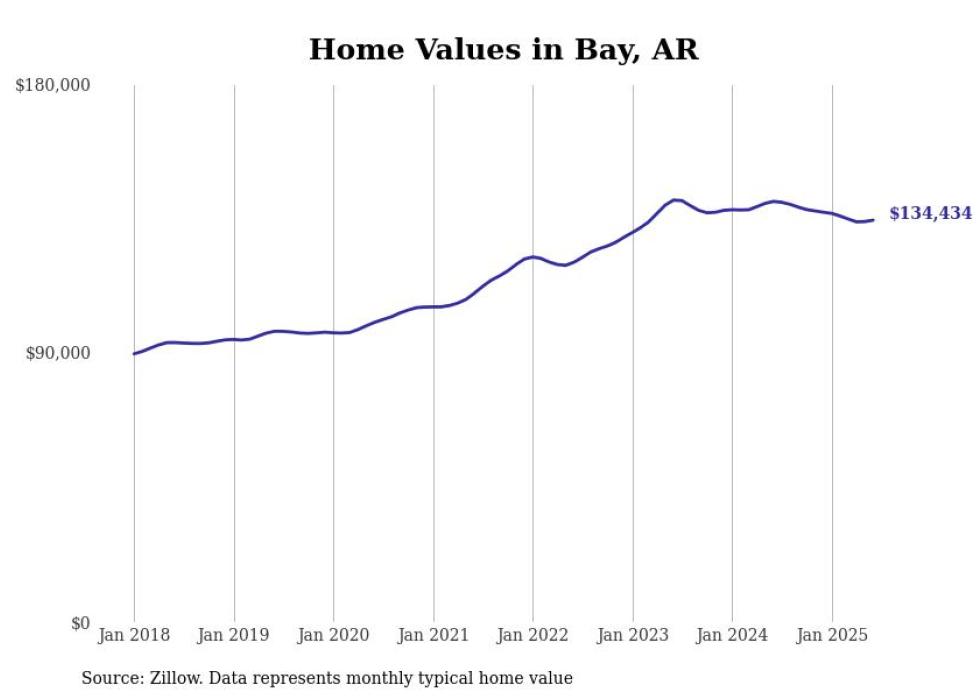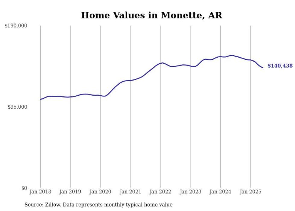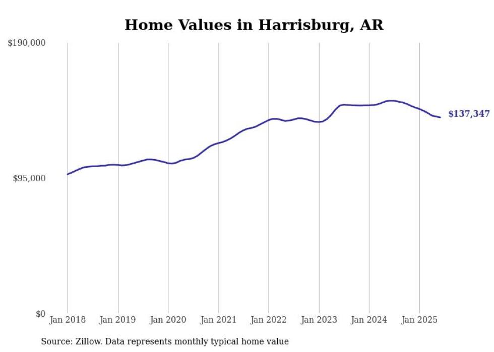 Stacker compiled a list of cities with the most expensive homes in the Jonesboro, AR metro area using data from Zillow. Charts show the monthly typical home value since January 2018.