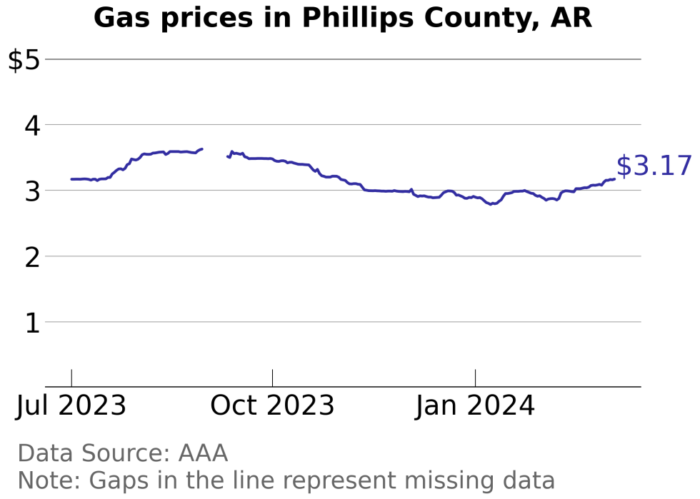 How gas prices have changed in Phillips County, Arkansas in the last week