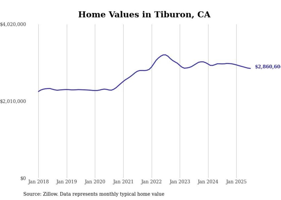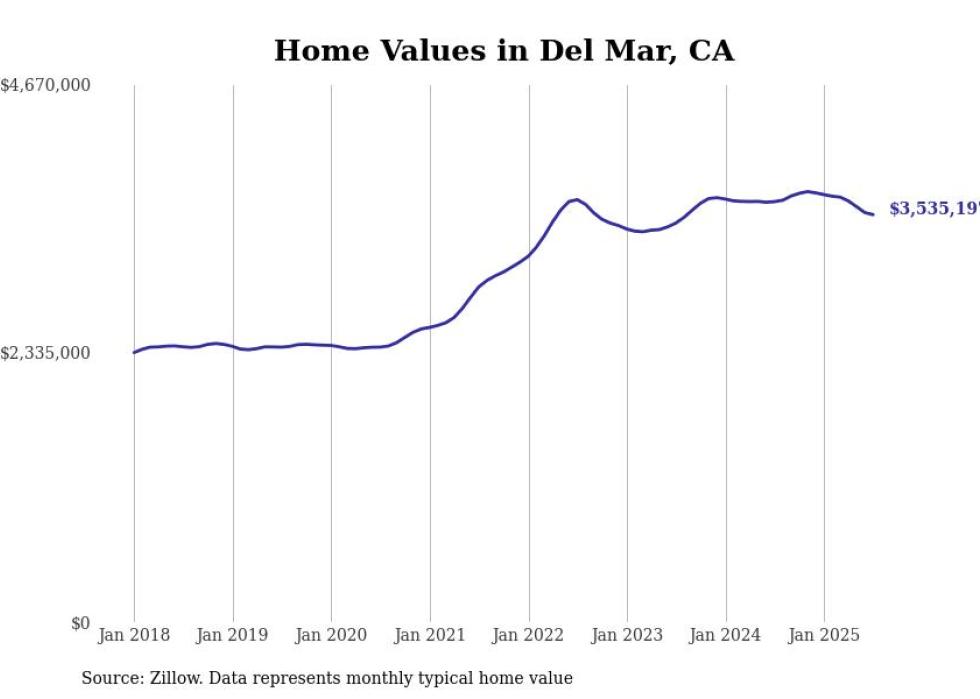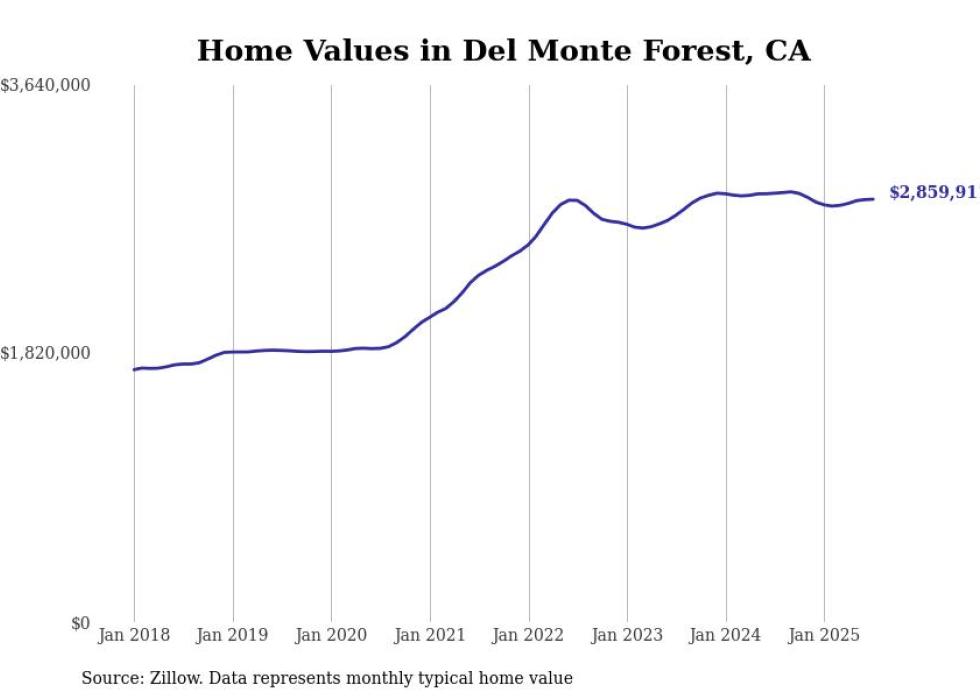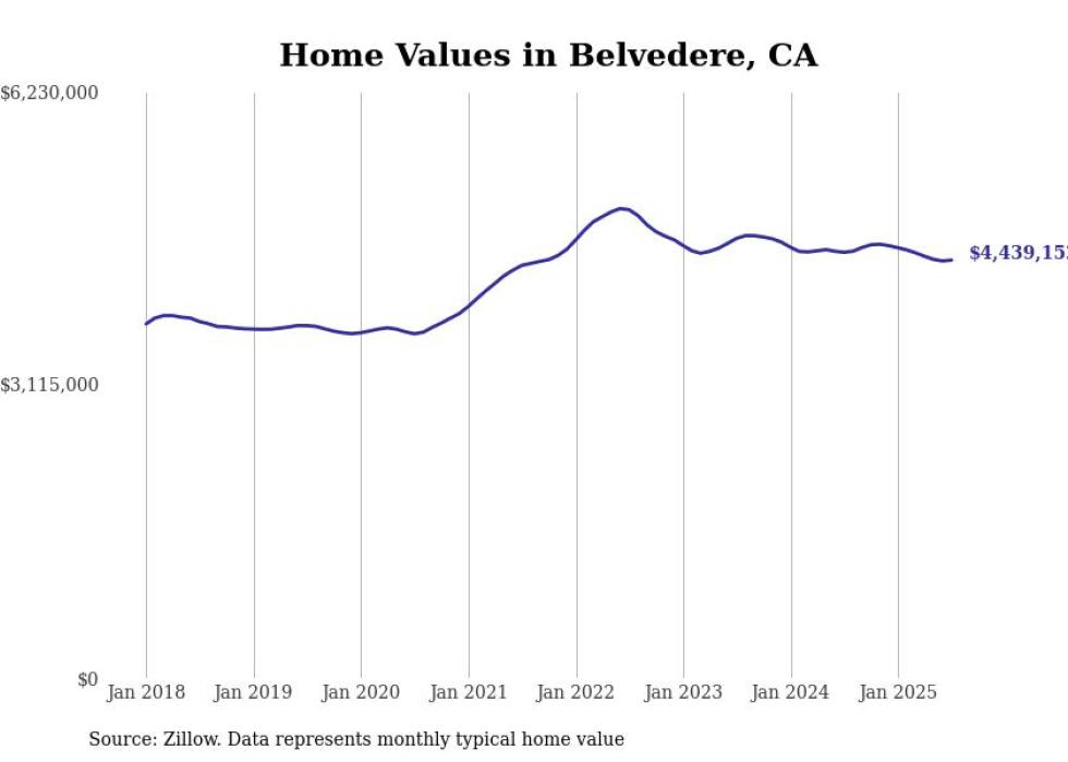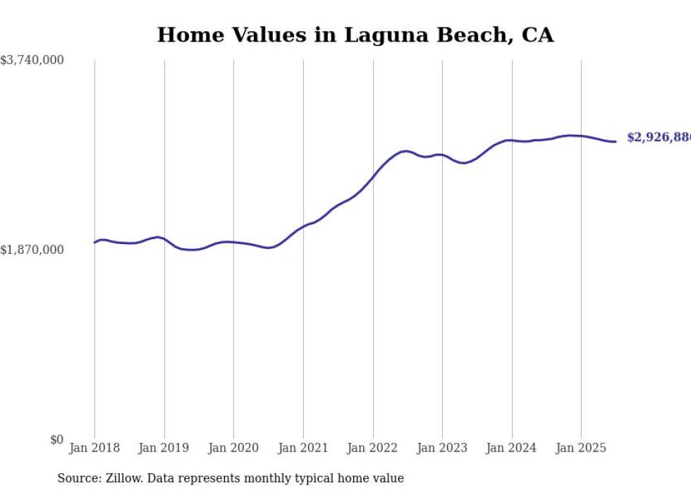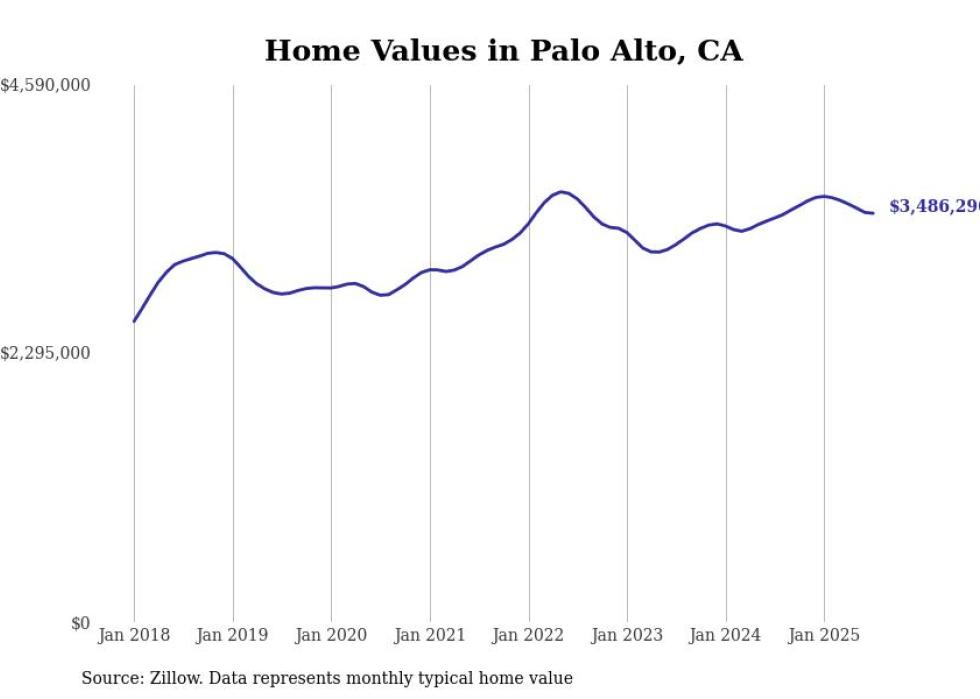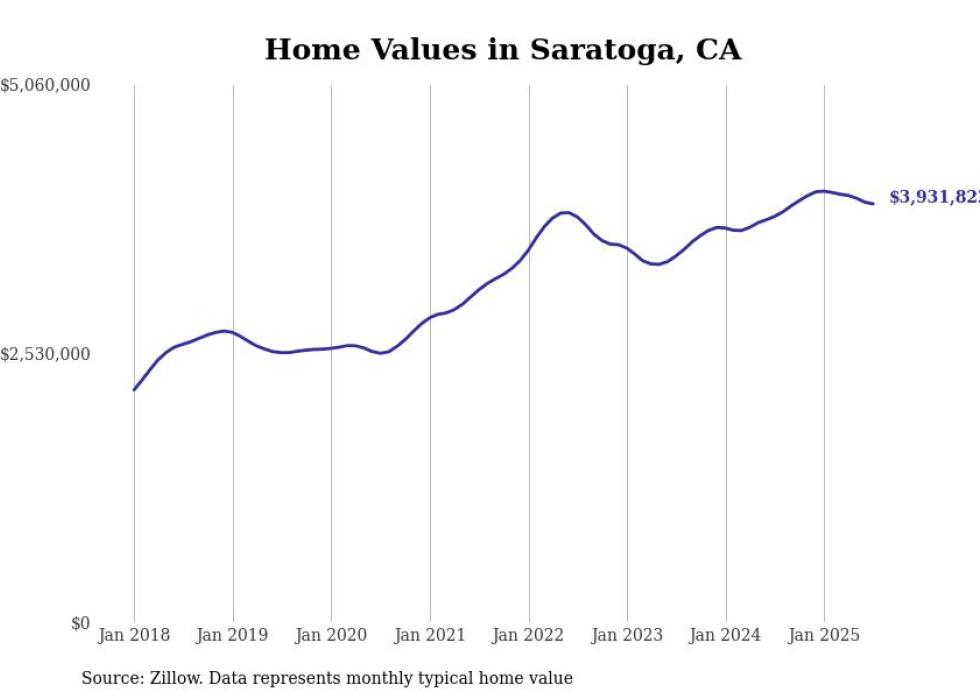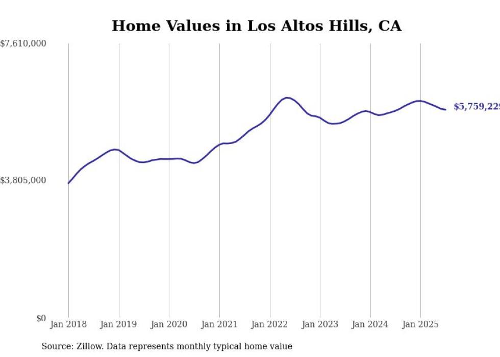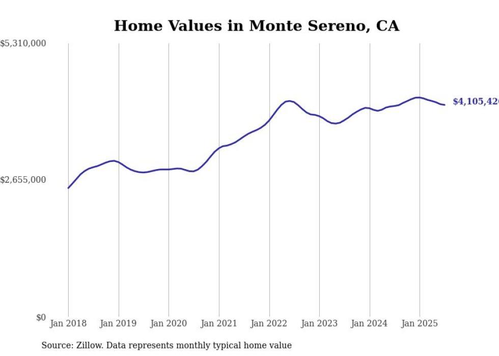 Stacker compiled a list of cities with the most expensive homes in California using data from Zillow. Cities are ranked by the Zillow Home Values Index for all homes as of July 2025. The charts in this story were created automatically using Matplotlib.