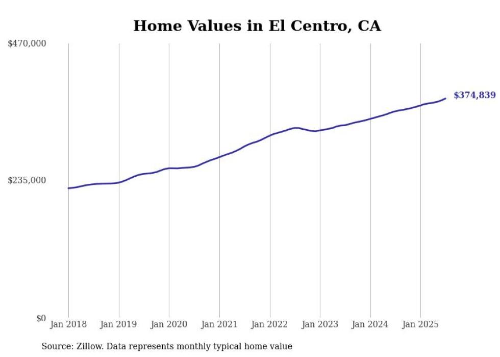 Stacker compiled a list of cities with the most expensive homes in the El Centro metro area using data from Zillow. Charts show the monthly typical home value since January 2018. All 7 cities and towns with data available were included in the list.