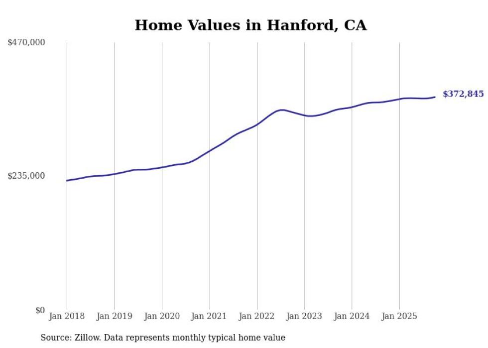 Stacker compiled a list of cities with the most expensive homes in the Hanford metro area using data from Zillow. Charts show the monthly typical home value since January 2018. All 7 cities and towns with data available were included in the list.