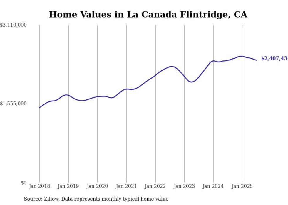 Stacker compiled a list of cities with the most expensive homes in the Los Angeles metro area using data from Zillow. Charts show the monthly typical home value since January 2018. Data was available for 152 cities and towns.