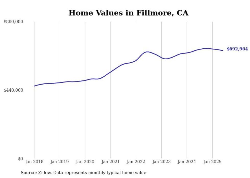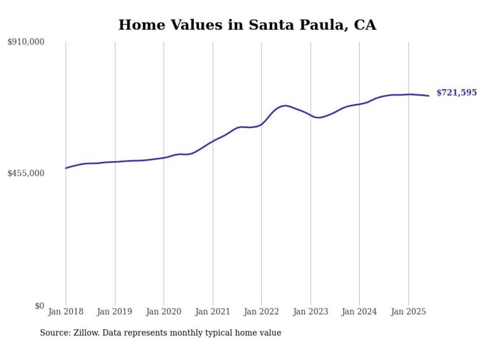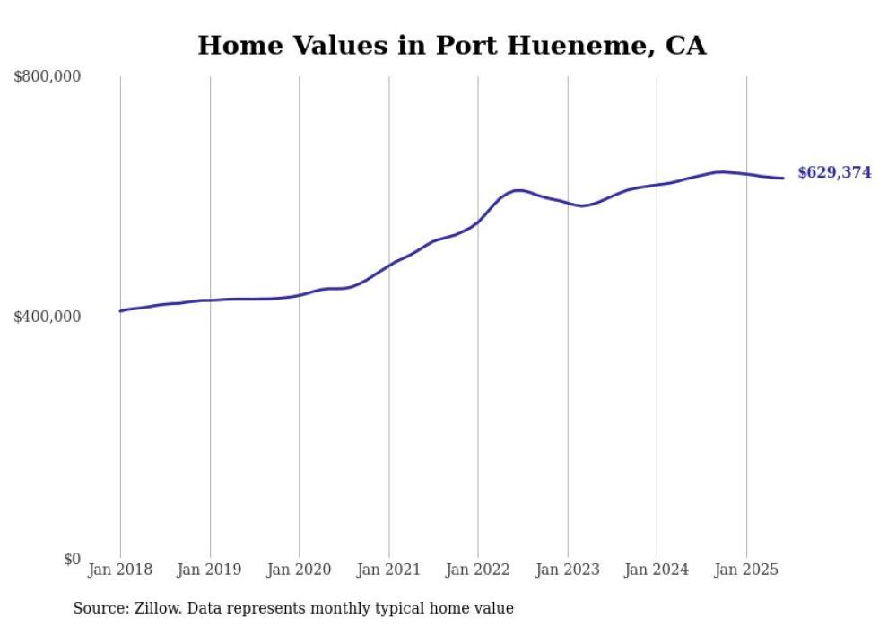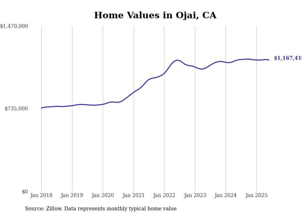 Stacker compiled a list of cities with the most expensive homes in the Oxnard-Thousand Oaks-Ventura, CA metro area using data from Zillow. Charts show the monthly typical home value since January 2018.
