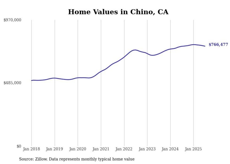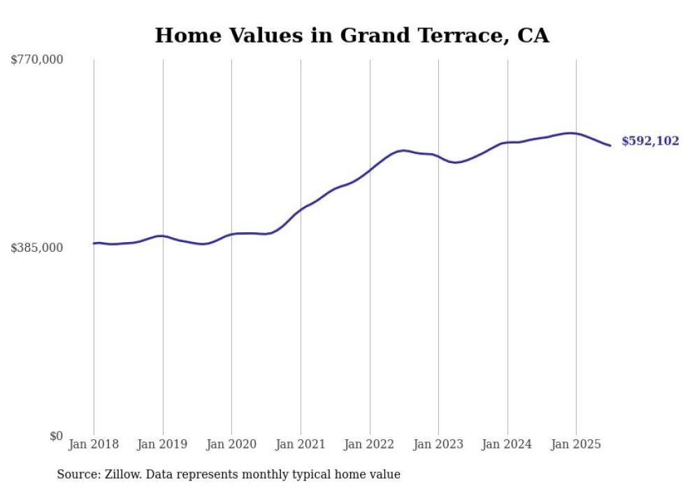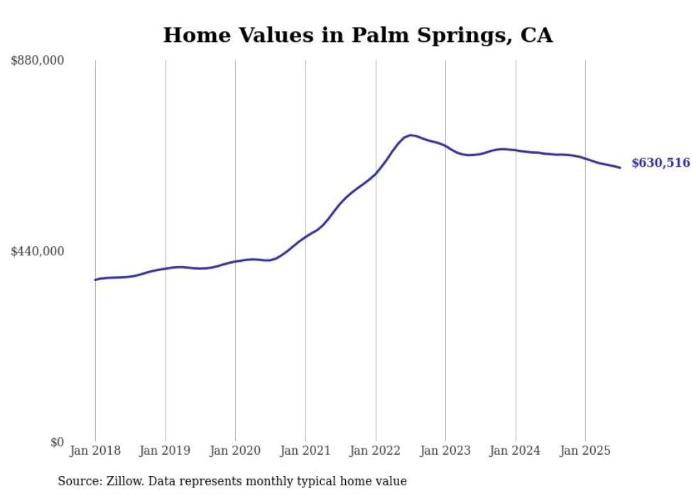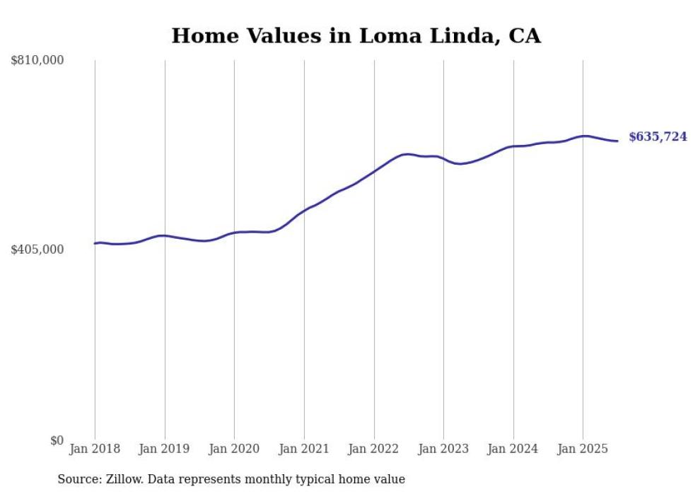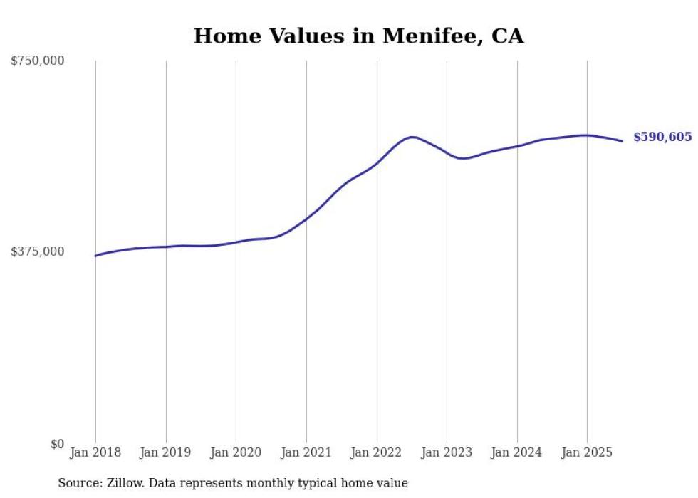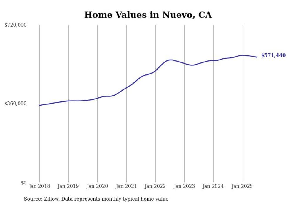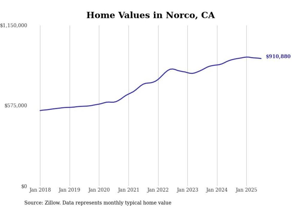 Stacker compiled a list of cities with the most expensive homes in the Riverside metro area using data from Zillow. Charts show the monthly typical home value since January 2018. Data was available for 92 cities and towns.