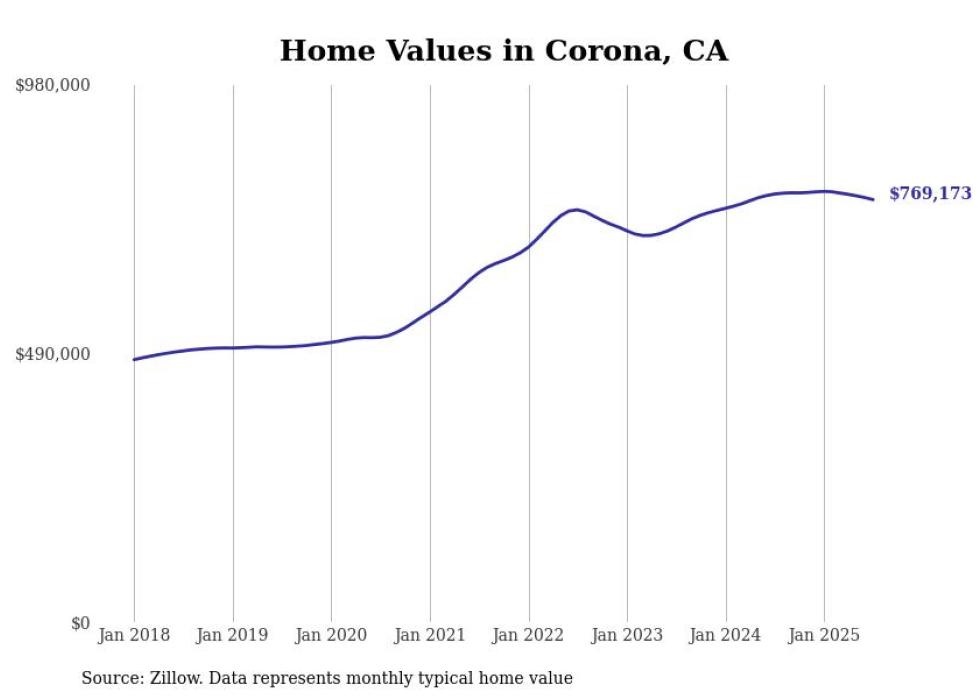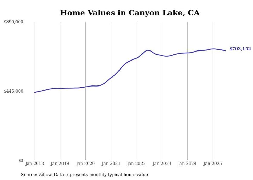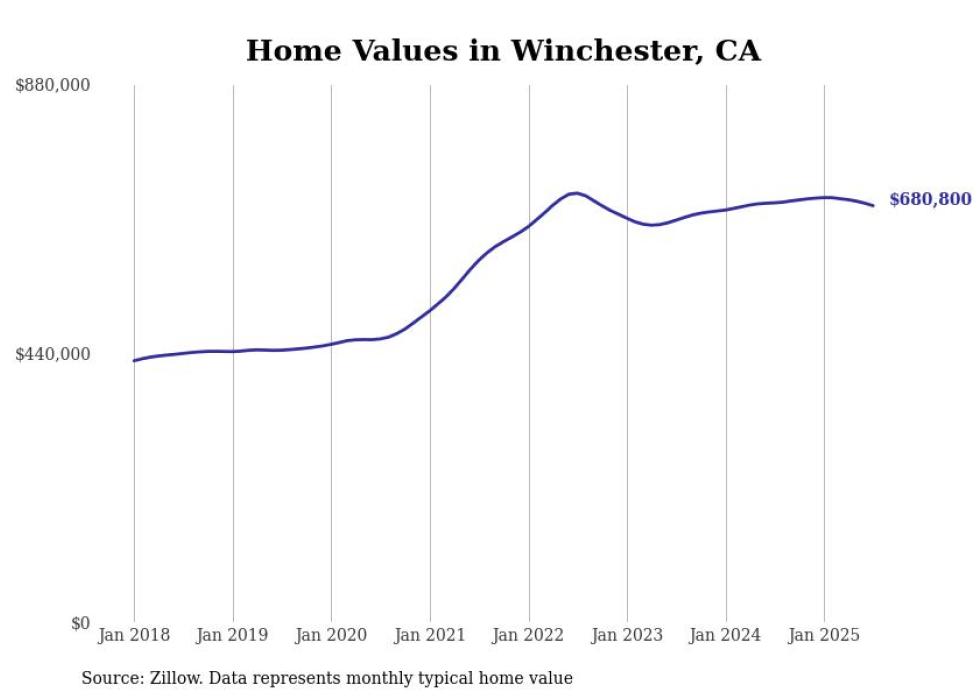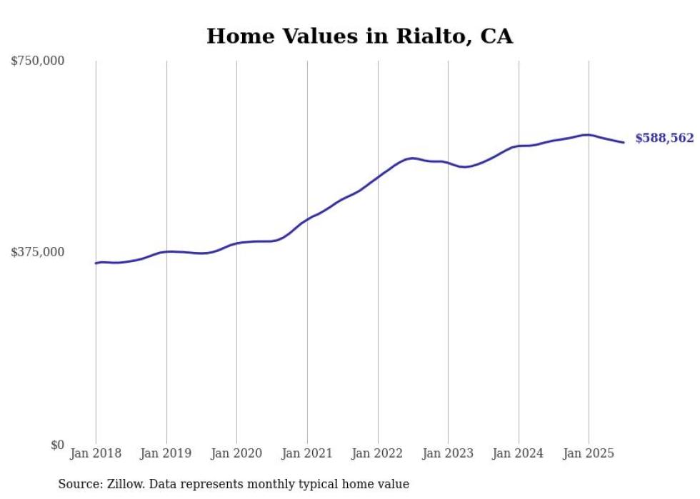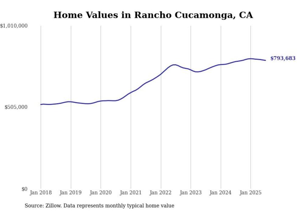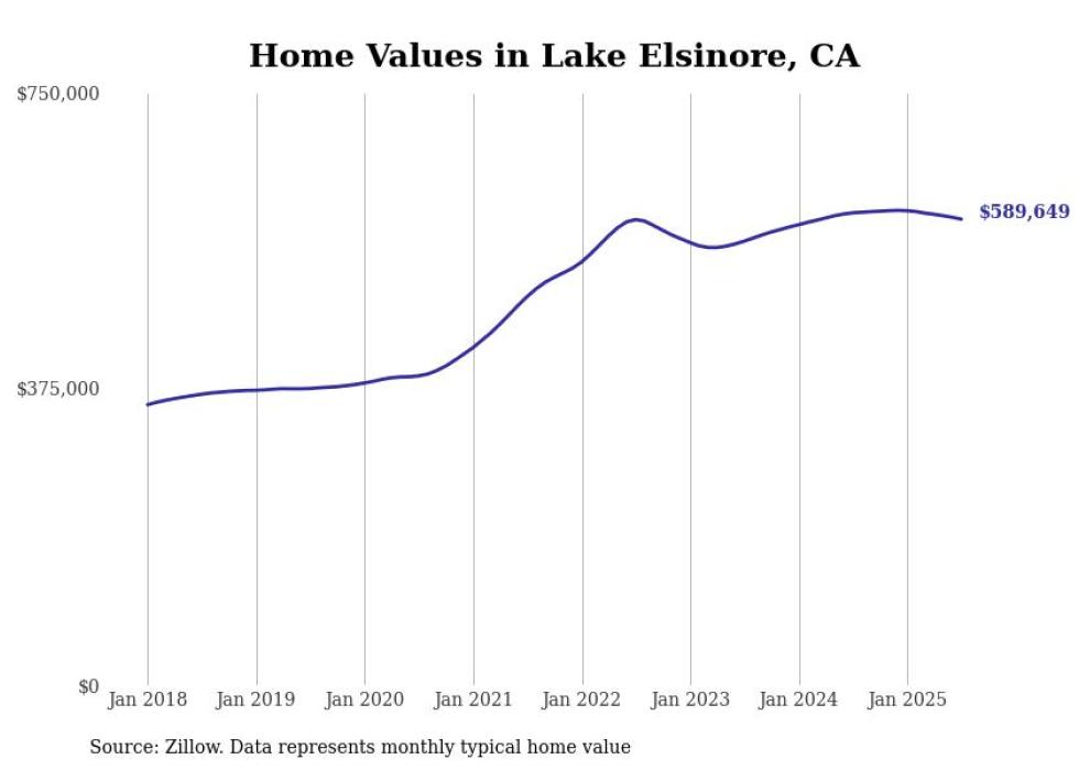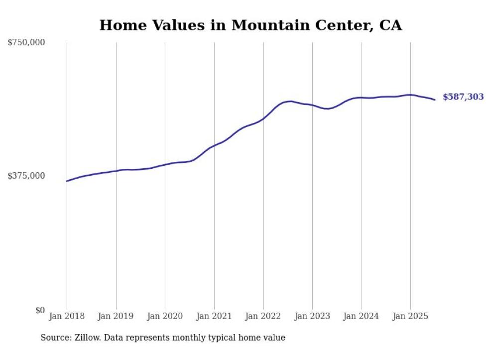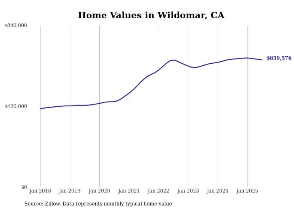 Stacker compiled a list of cities with the most expensive homes in the Riverside metro area using data from Zillow. Charts show the monthly typical home value since January 2018. Data was available for 92 cities and towns.
