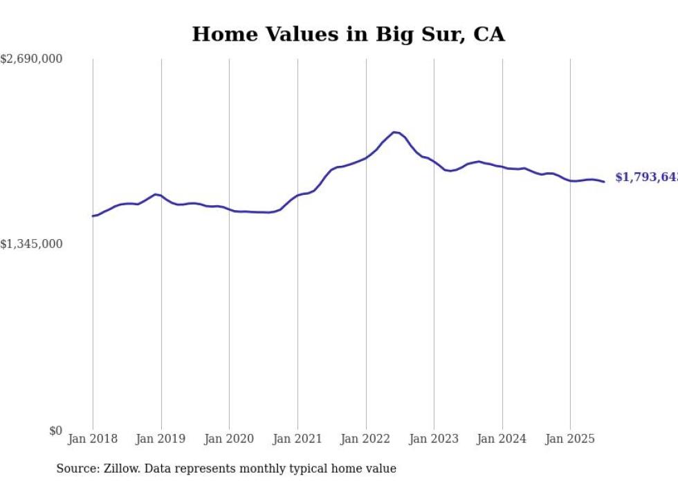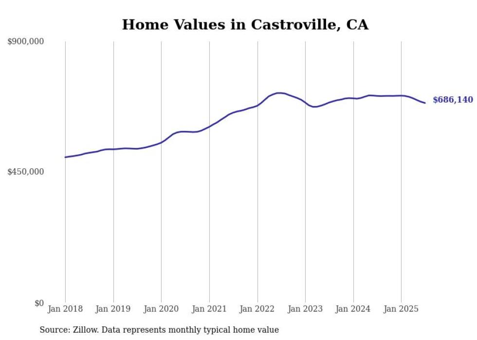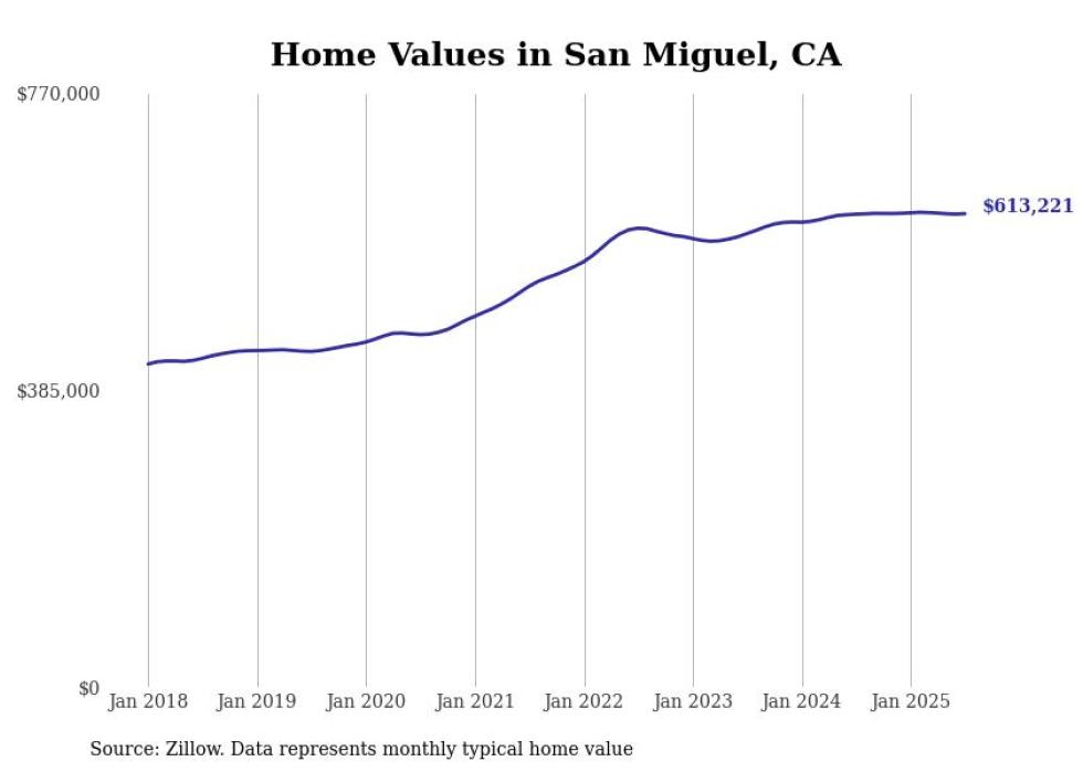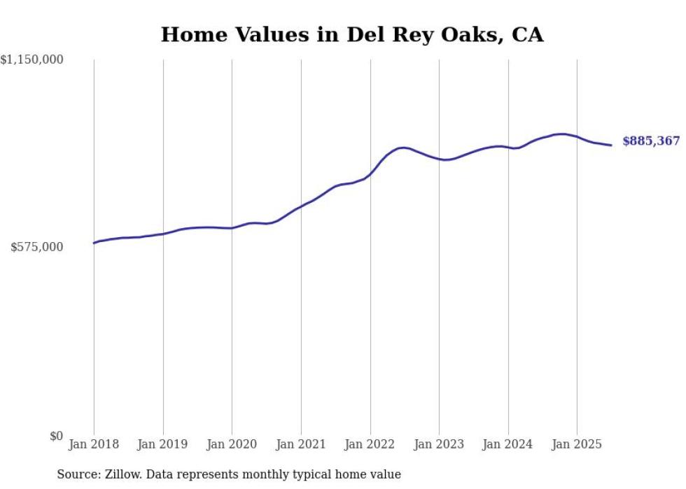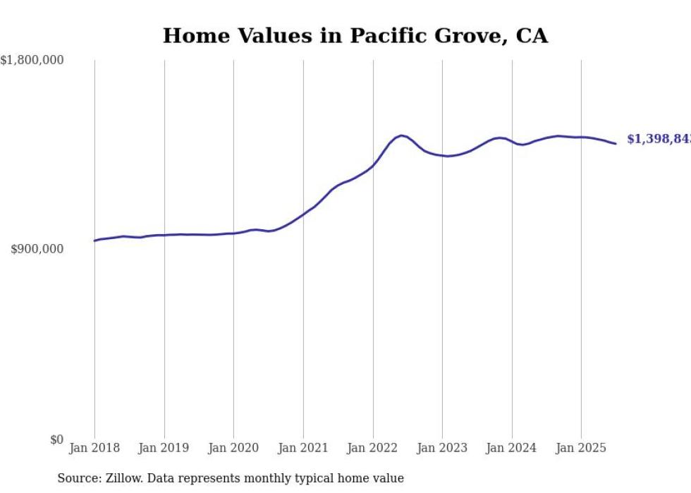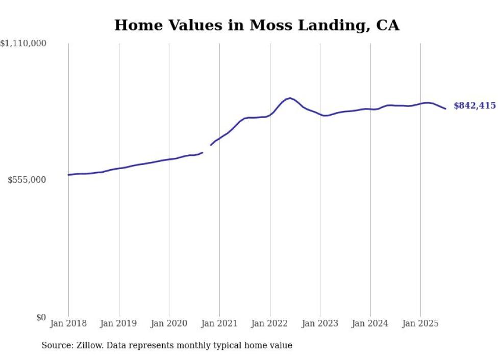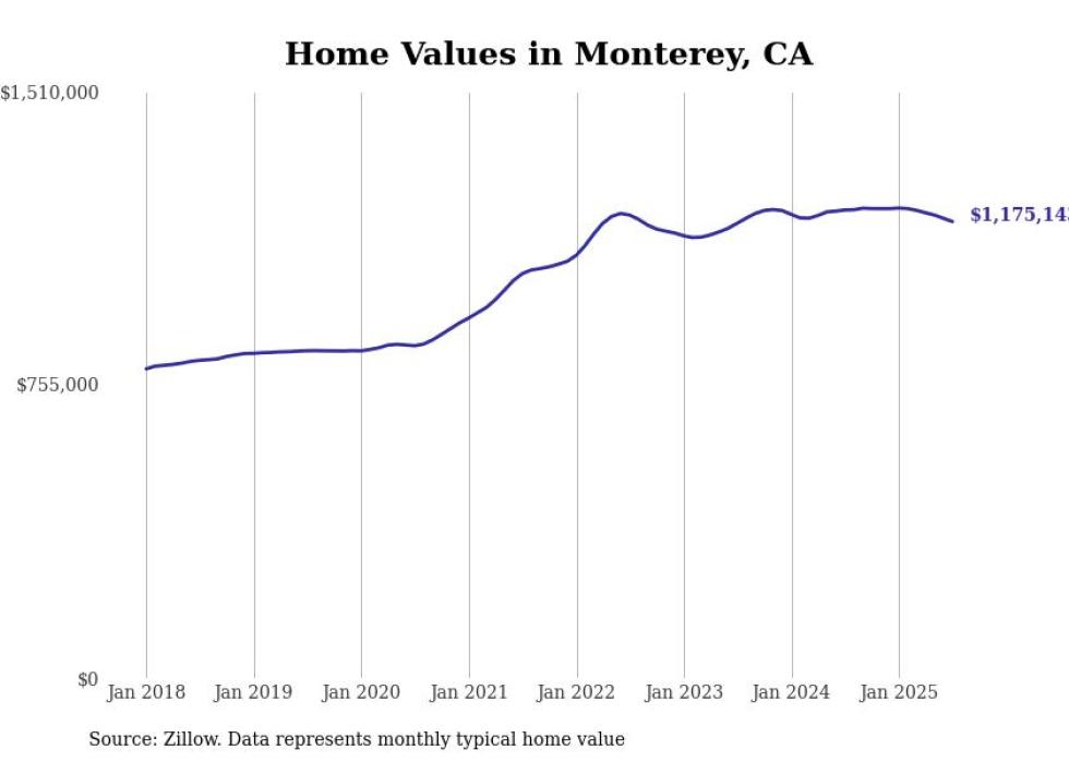 Stacker compiled a list of cities with the most expensive homes in the Salinas metro area using data from Zillow. Charts show the monthly typical home value since January 2018. All 20 cities and towns with data available were included in the list.