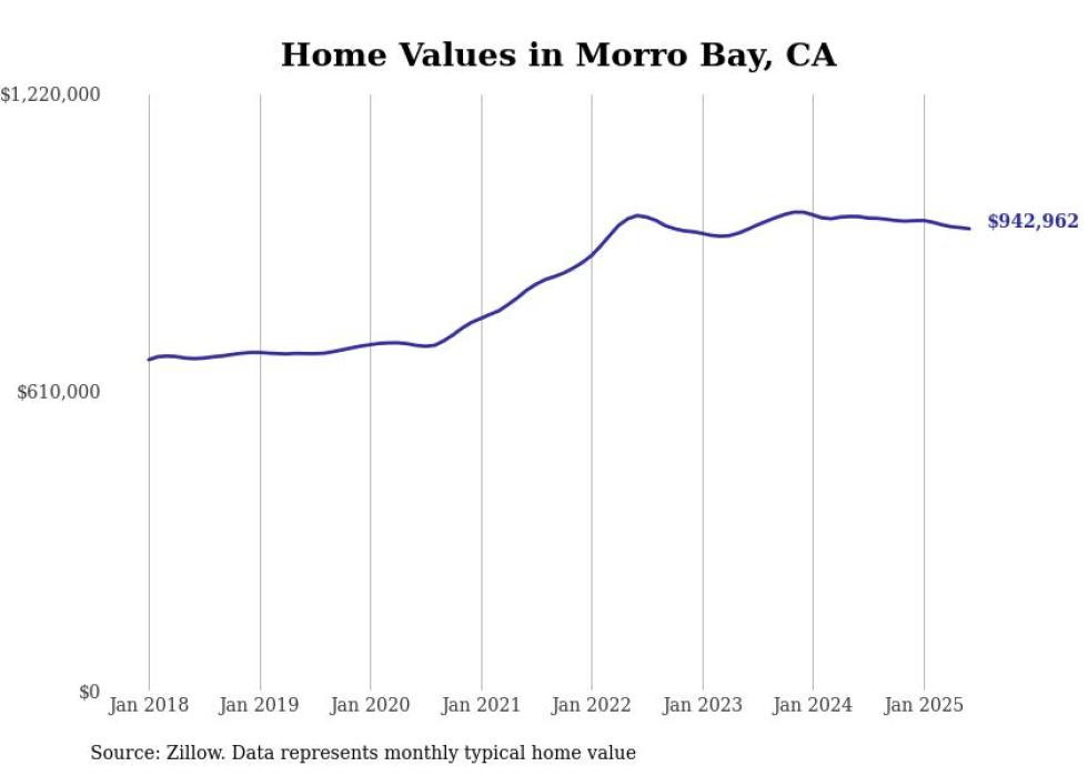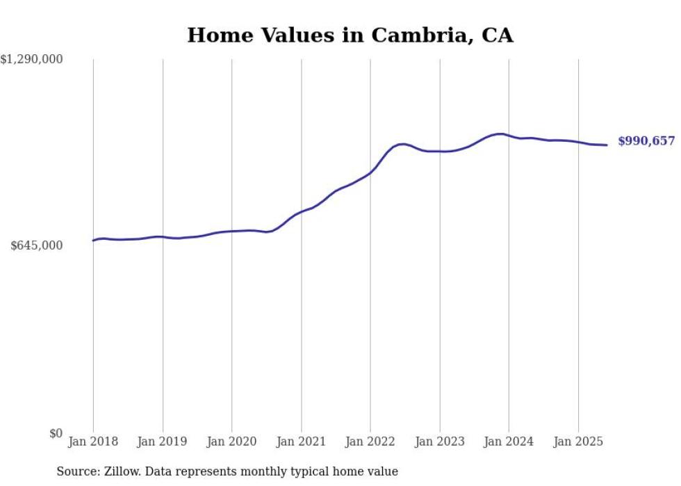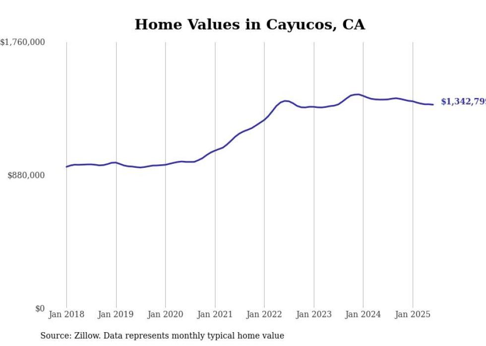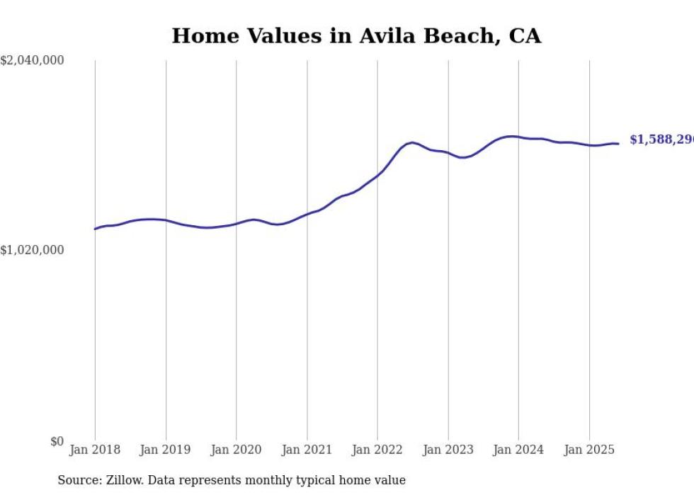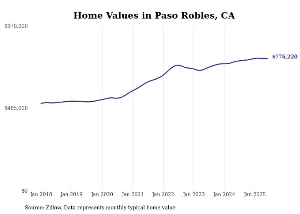 Stacker compiled a list of cities with the most expensive homes in the San Luis Obispo-Paso Robles, CA metro area using data from Zillow. Charts show the monthly typical home value since January 2018.