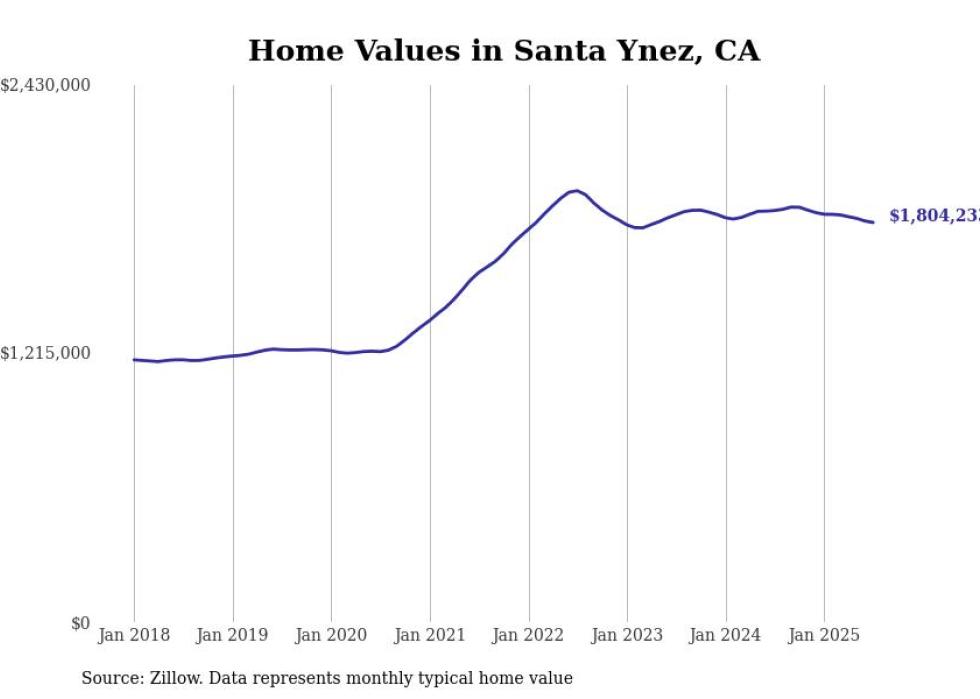 Stacker compiled a list of cities with the most expensive homes in the Santa Maria metro area using data from Zillow. Charts show the monthly typical home value since January 2018. All 15 cities and towns with data available were included in the list.