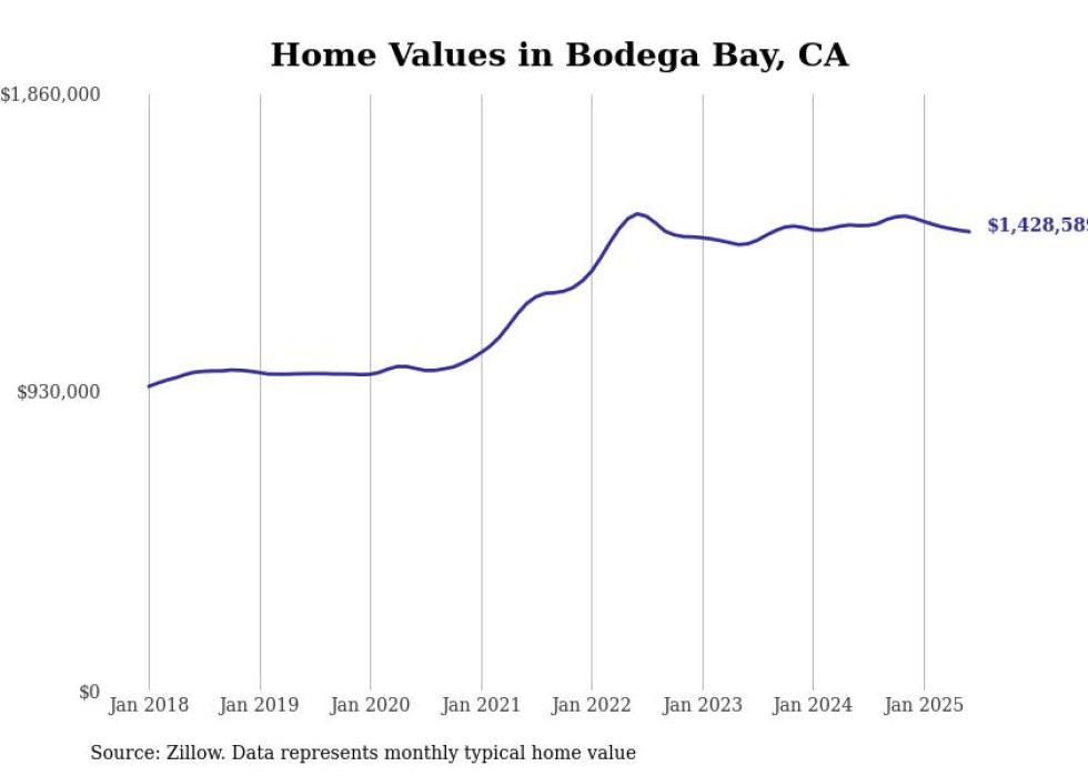 Stacker compiled a list of cities with the most expensive homes in the Santa Rosa-Petaluma, CA metro area using data from Zillow. Charts show the monthly typical home value since January 2018.