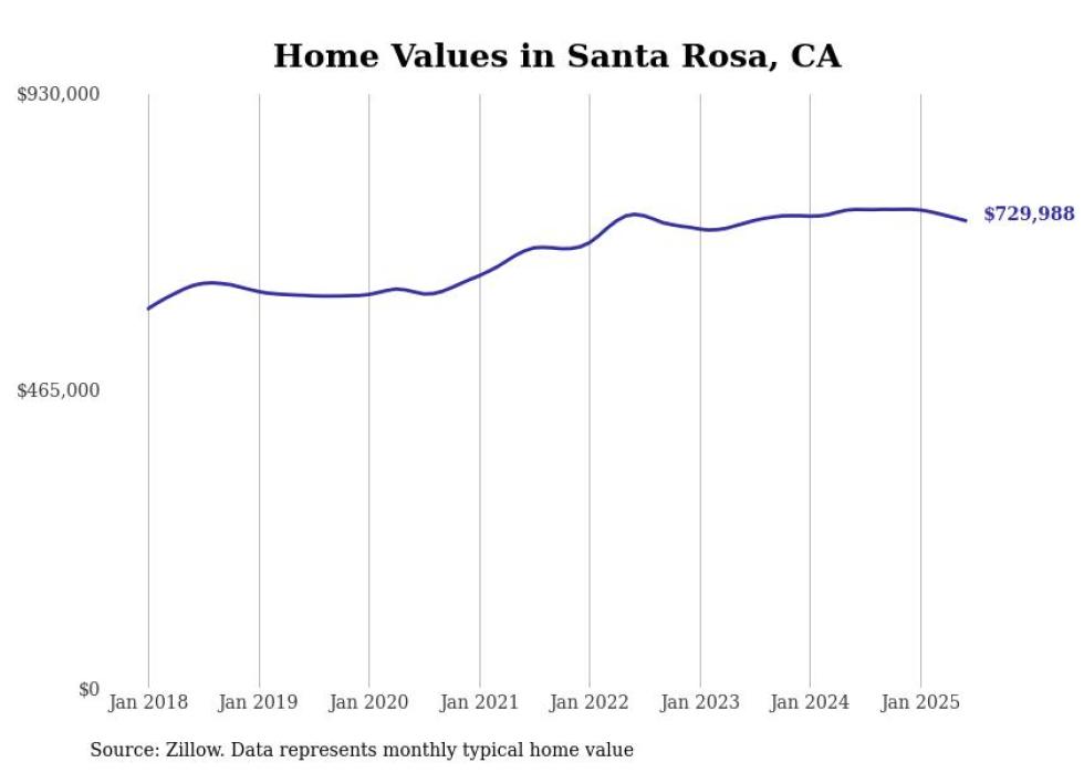 Cities with the fastest-growing home prices in the Santa Rosa metro area
