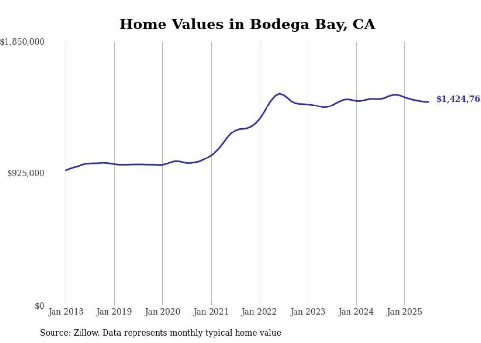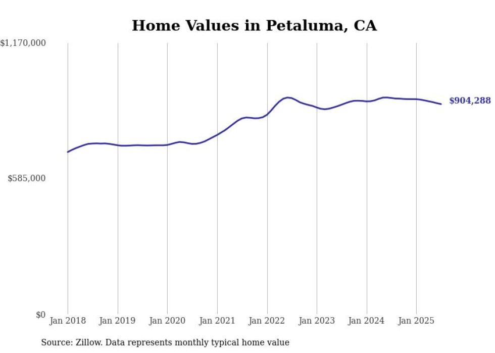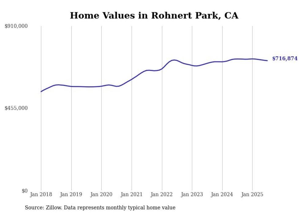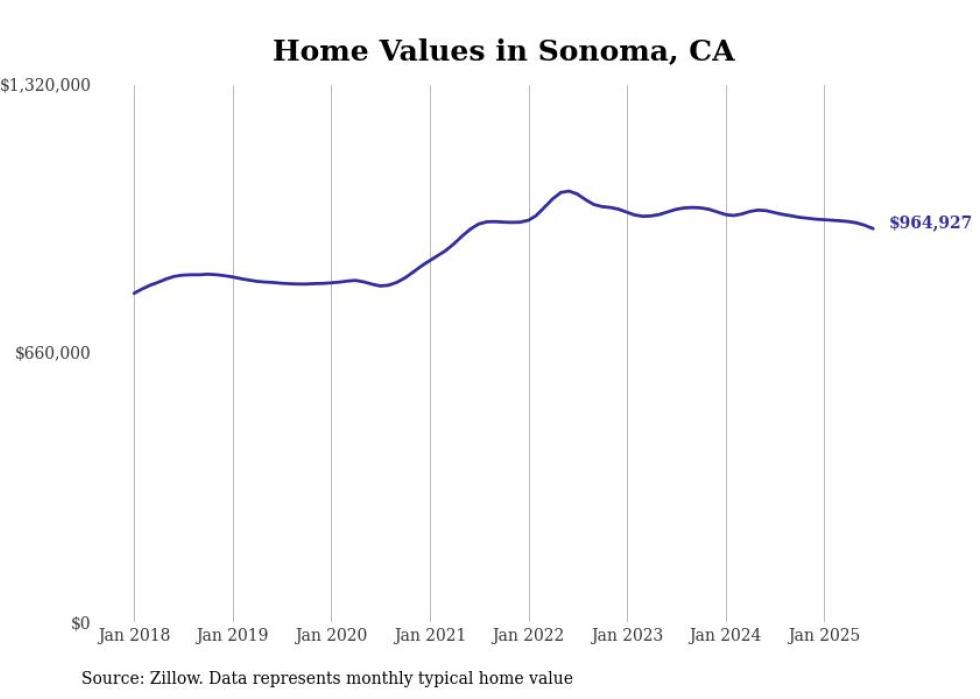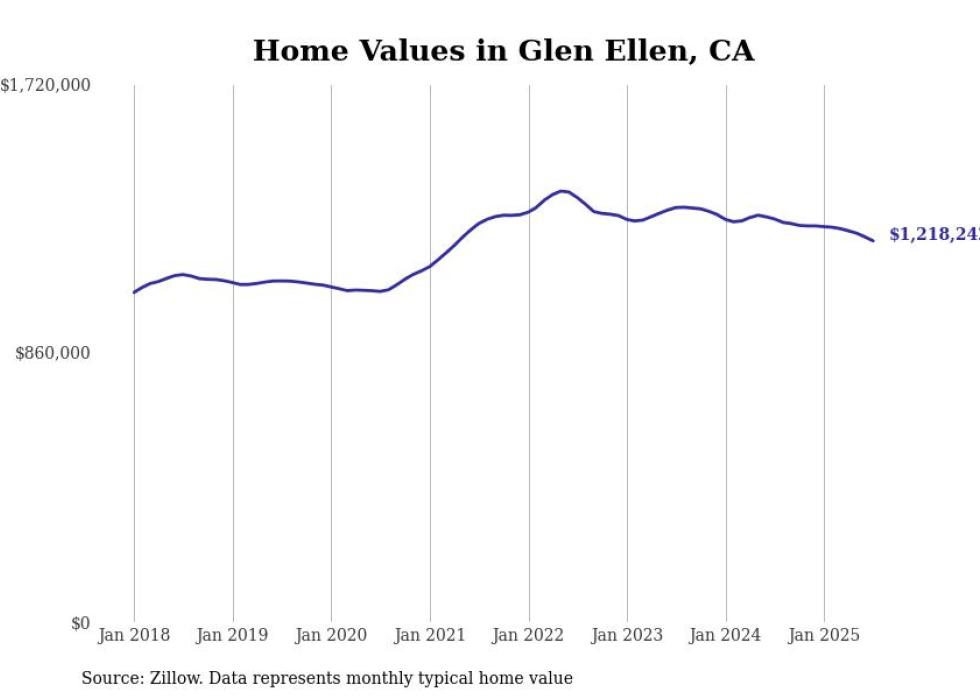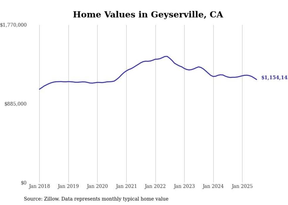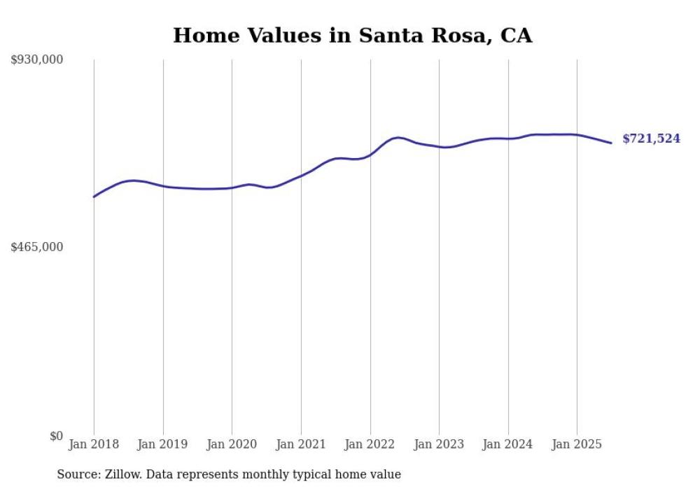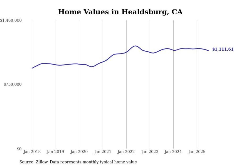 Stacker compiled a list of cities with the most expensive homes in the Santa Rosa metro area using data from Zillow. Charts show the monthly typical home value since January 2018. All 24 cities and towns with data available were included in the list.