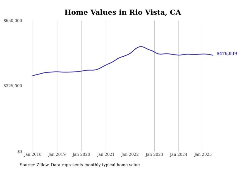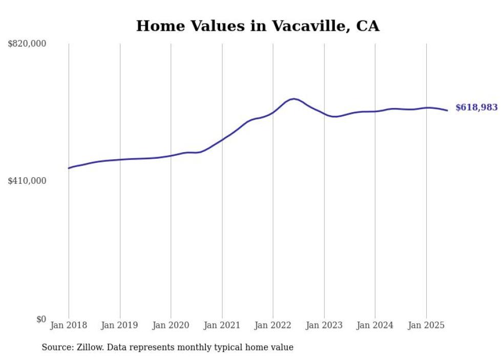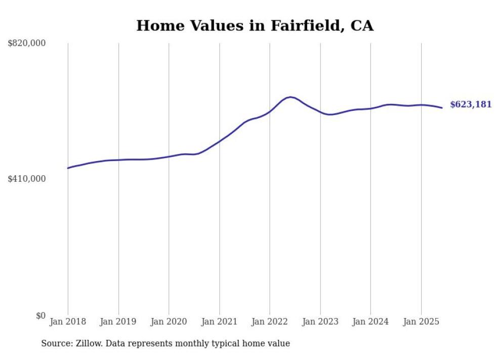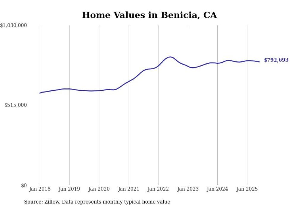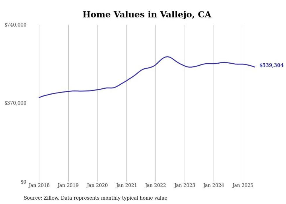 Stacker compiled a list of cities with the most expensive homes in the Vallejo, CA metro area using data from Zillow. Charts show the monthly typical home value since January 2018.