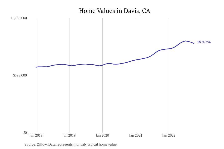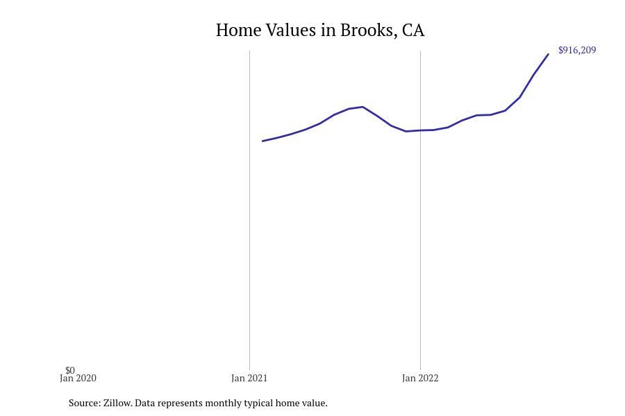 Stacker compiled a list of places with the fastest growing home prices in Yolo County, CA using data from Zillow. Places are ranked by the dollar change Zillow Home Values Index for all homes from October 2021 to October 2022. The ZVHI represents a seasonally adjusted price for the middle market for all homes. All 8 cities and towns with data available were included in the list. Charts for each place show the monthly typical home value since January 2018.