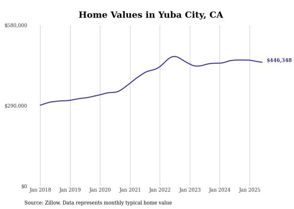 Stacker compiled a list of cities with the most expensive homes in the Yuba City, CA metro area using data from Zillow. Charts show the monthly typical home value since January 2018.
