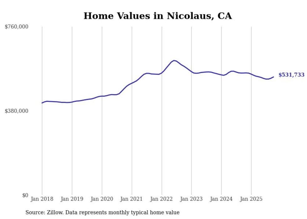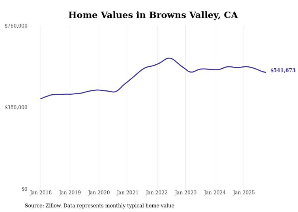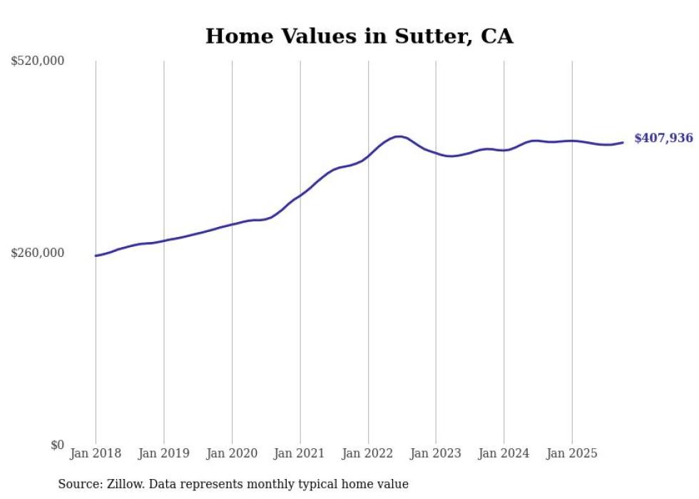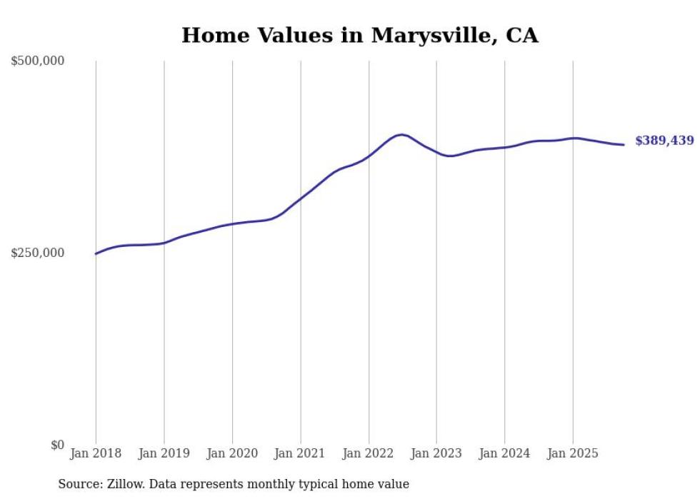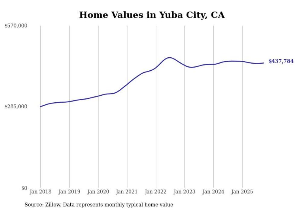 Stacker compiled a list of cities with the most expensive homes in the Yuba City metro area using data from Zillow. Charts show the monthly typical home value since January 2018. All 21 cities and towns with data available were included in the list.