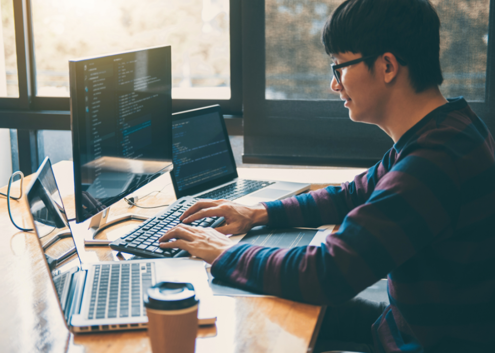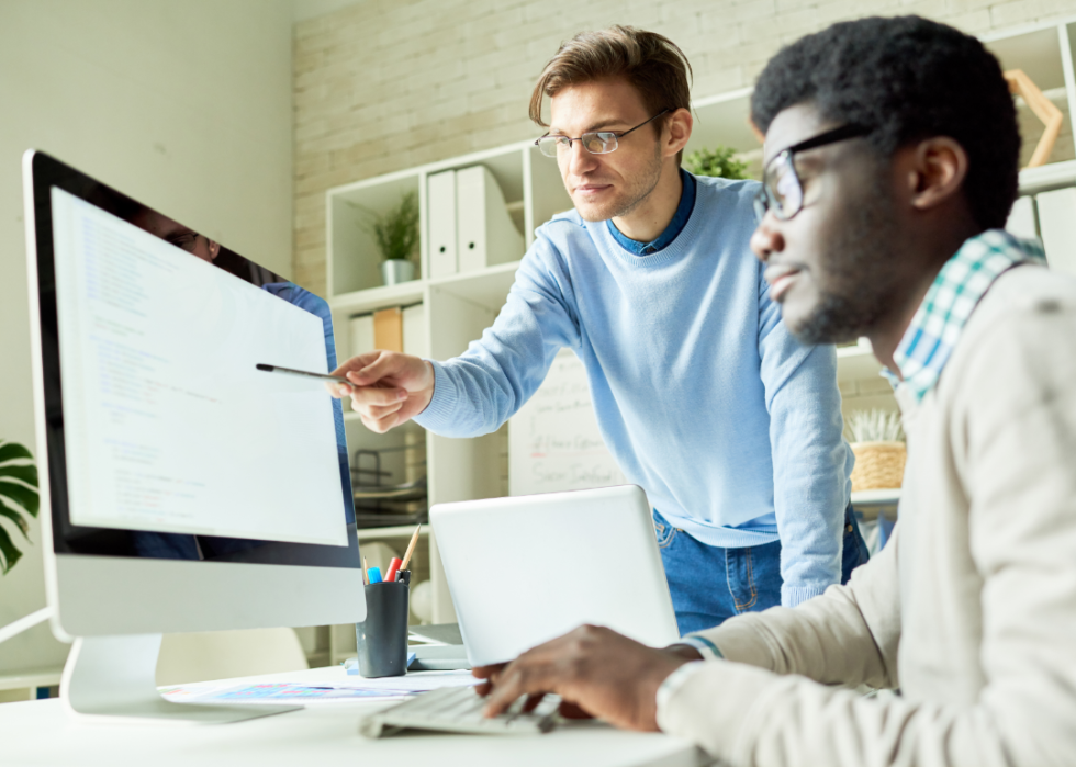 An information technology manager spends their days monitoring and administering an organization's information technology (aka its hardware—like computers—software, and data). These programs typically place a significant amount of emphasis on project management and leadership skills, and graduates can find employment as security analysts, computer systems analysts, and database administrators among other things.