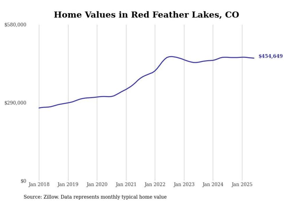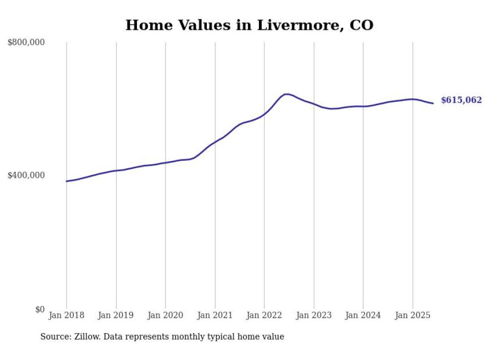 Stacker compiled a list of cities with the most expensive homes in the Fort Collins, CO metro area using data from Zillow. Charts show the monthly typical home value since January 2018.