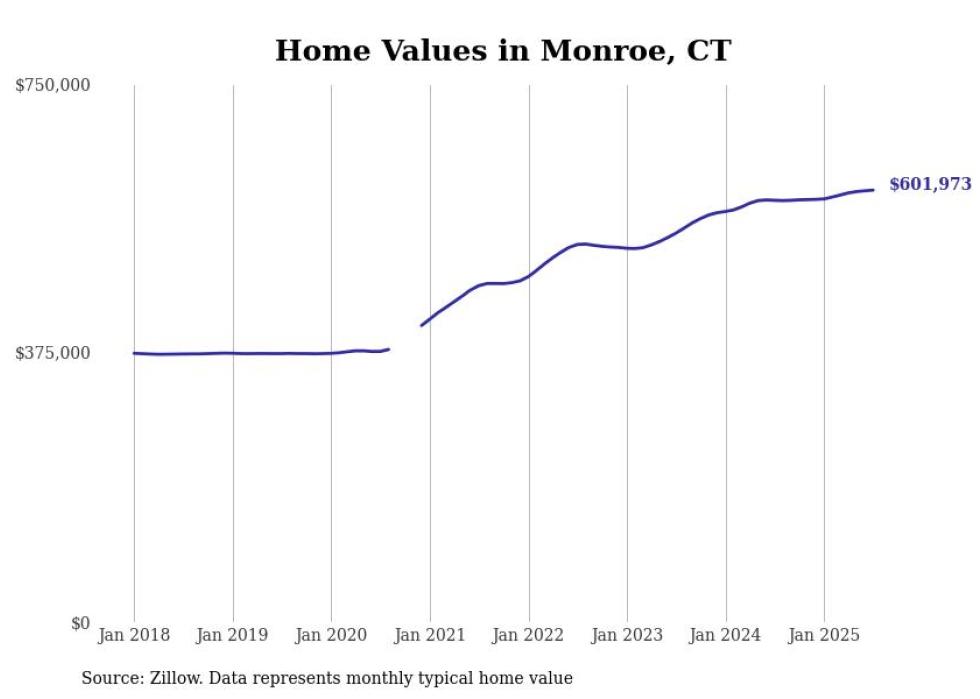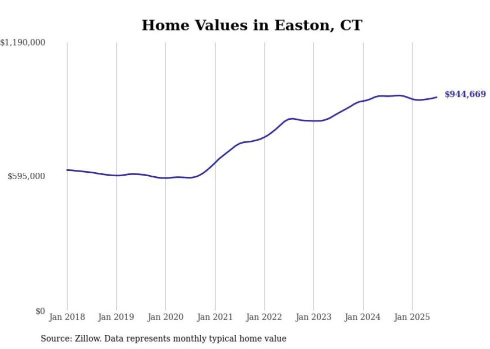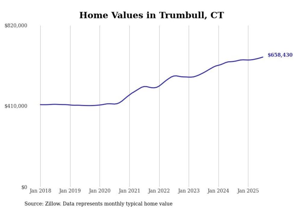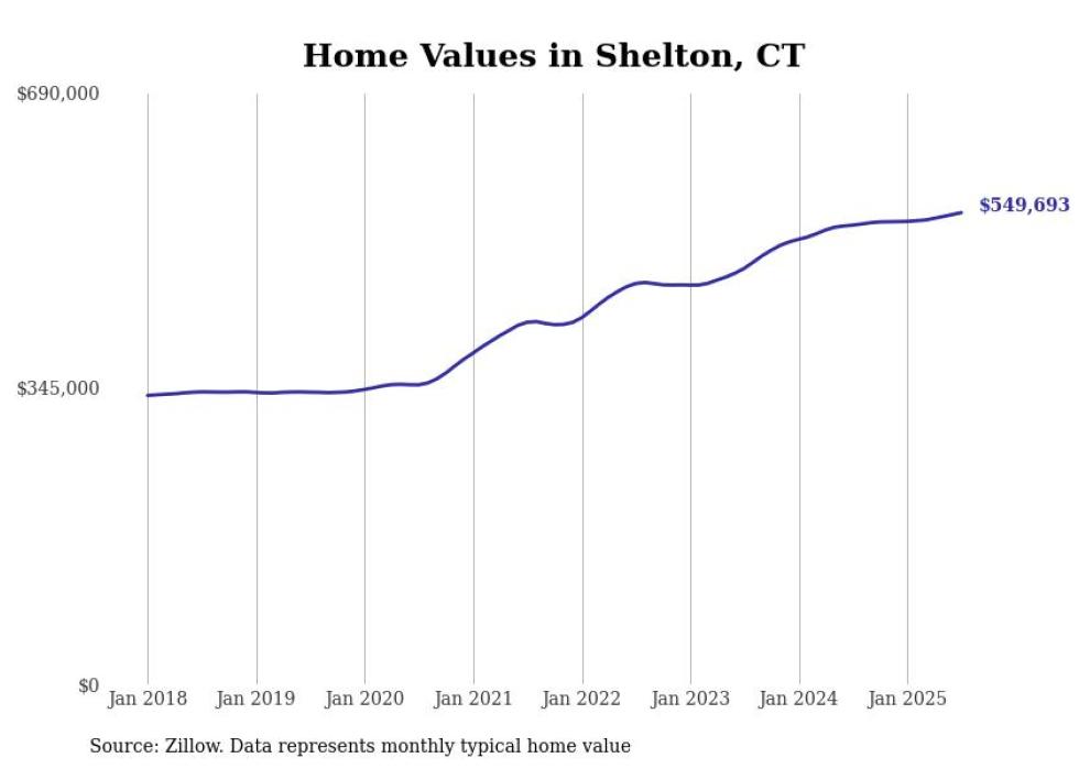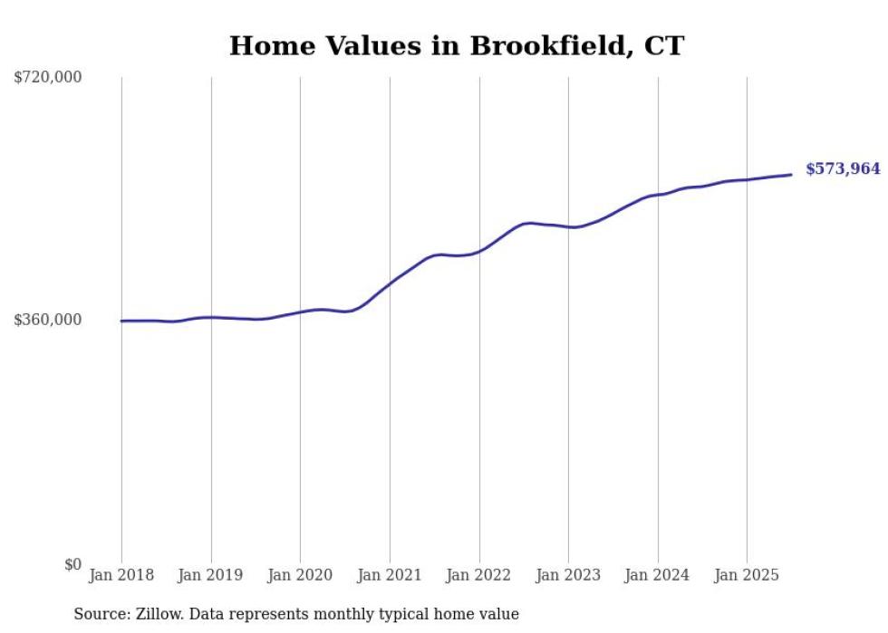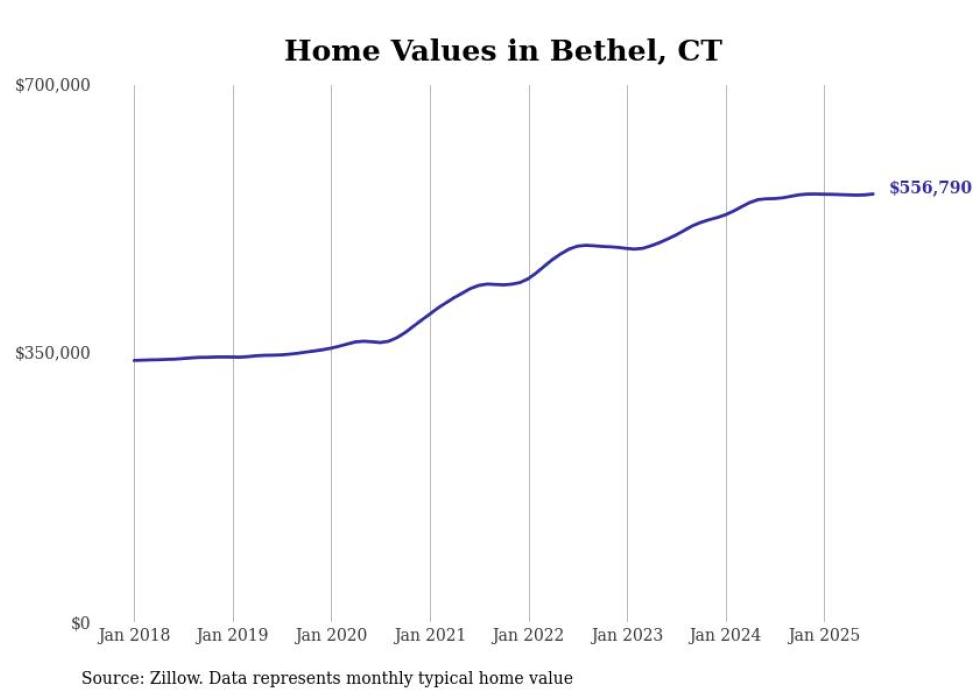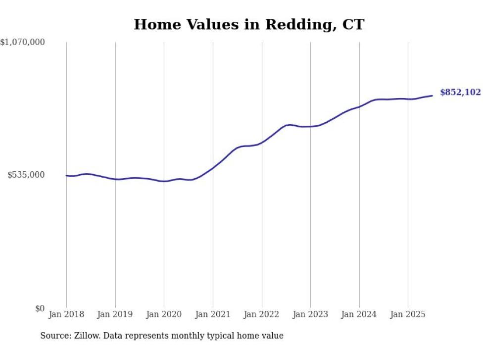 Stacker compiled a list of cities with the most expensive homes in the Bridgeport metro area using data from Zillow. Charts show the monthly typical home value since January 2018. All 23 cities and towns with data available were included in the list.