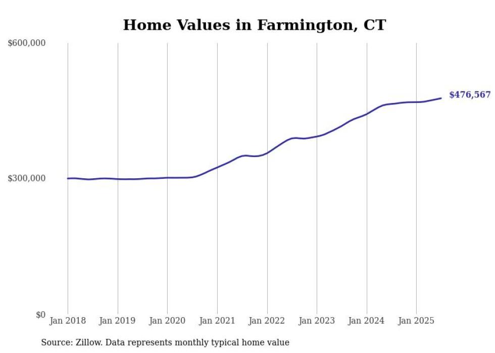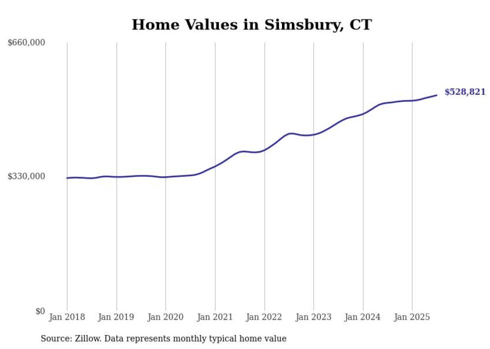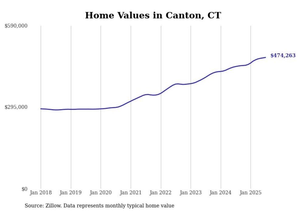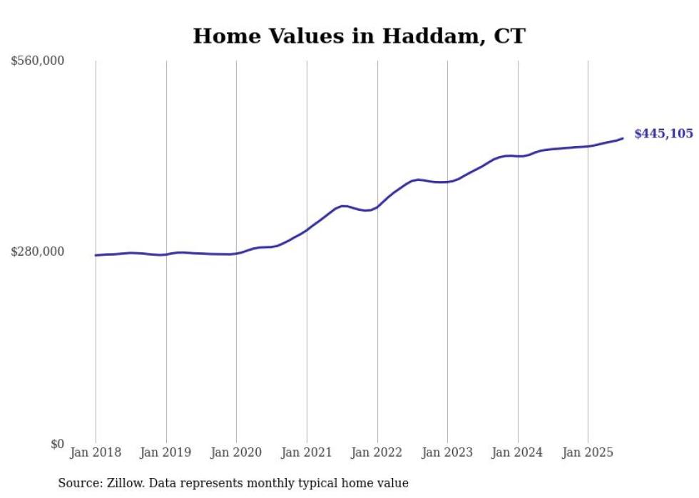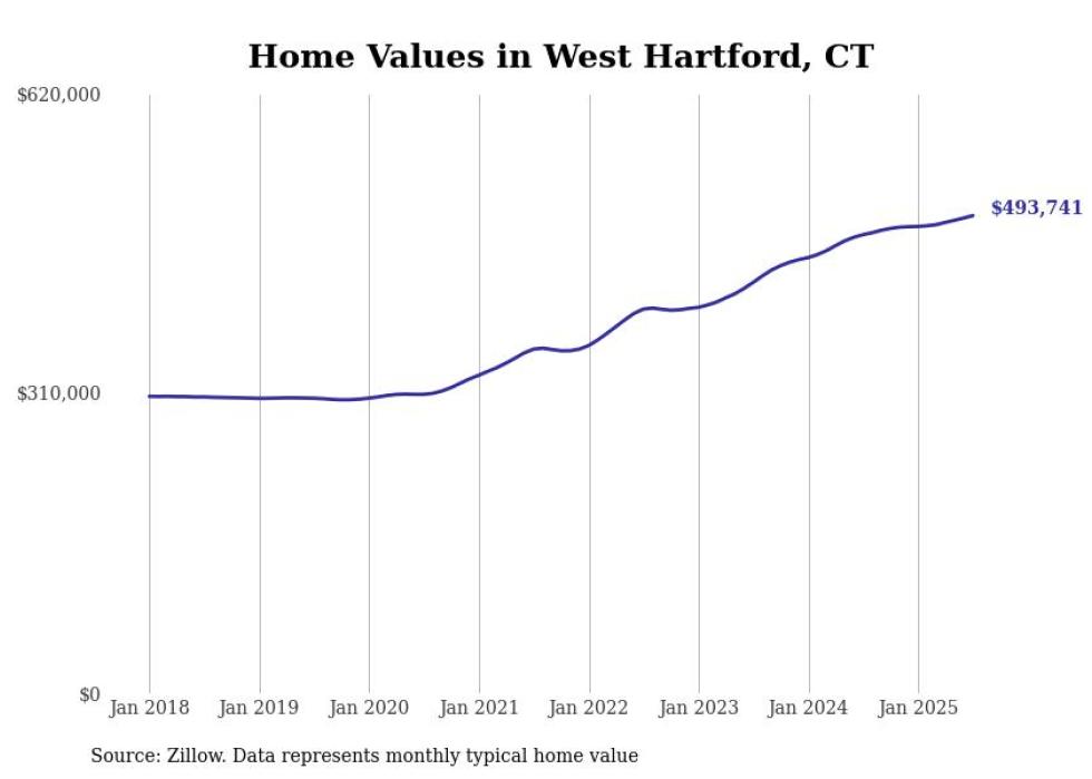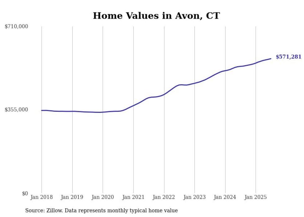 Stacker compiled a list of cities with the most expensive homes in the Hartford metro area using data from Zillow. Charts show the monthly typical home value since January 2018. Data was available for 59 cities and towns.