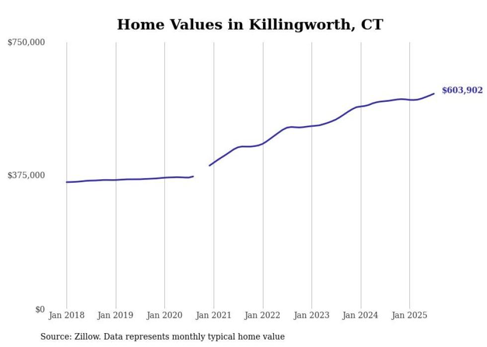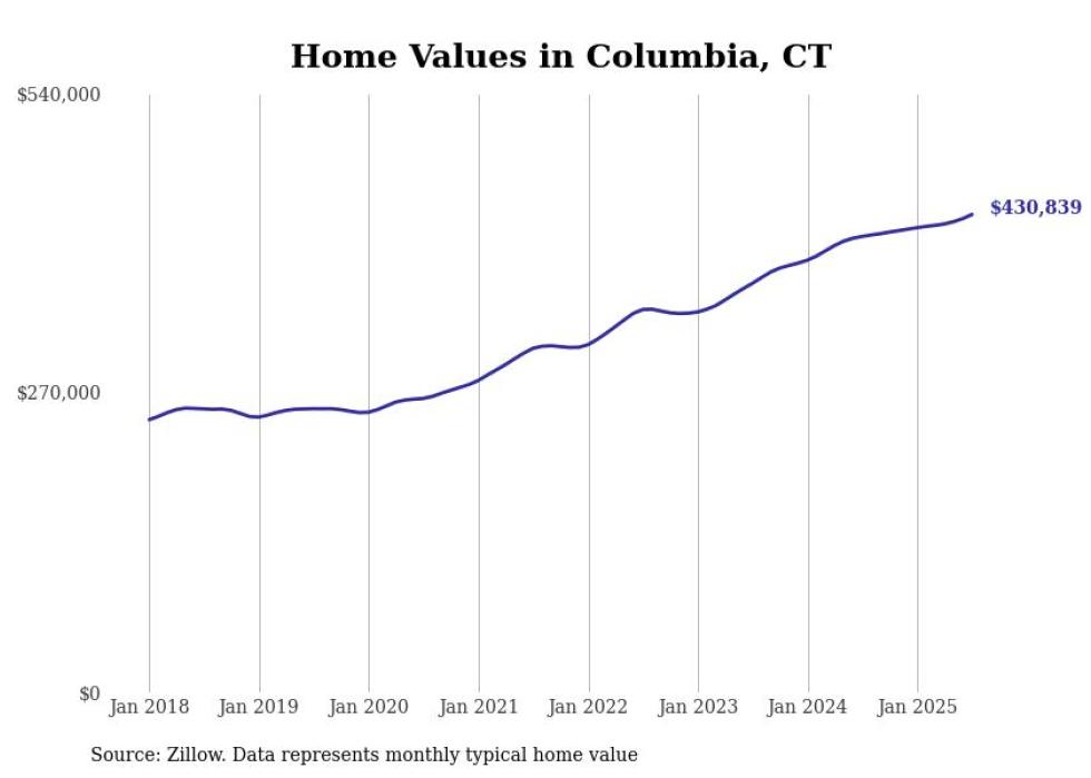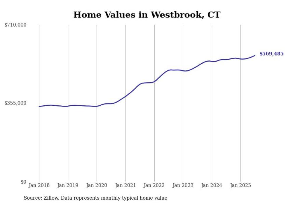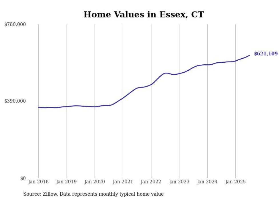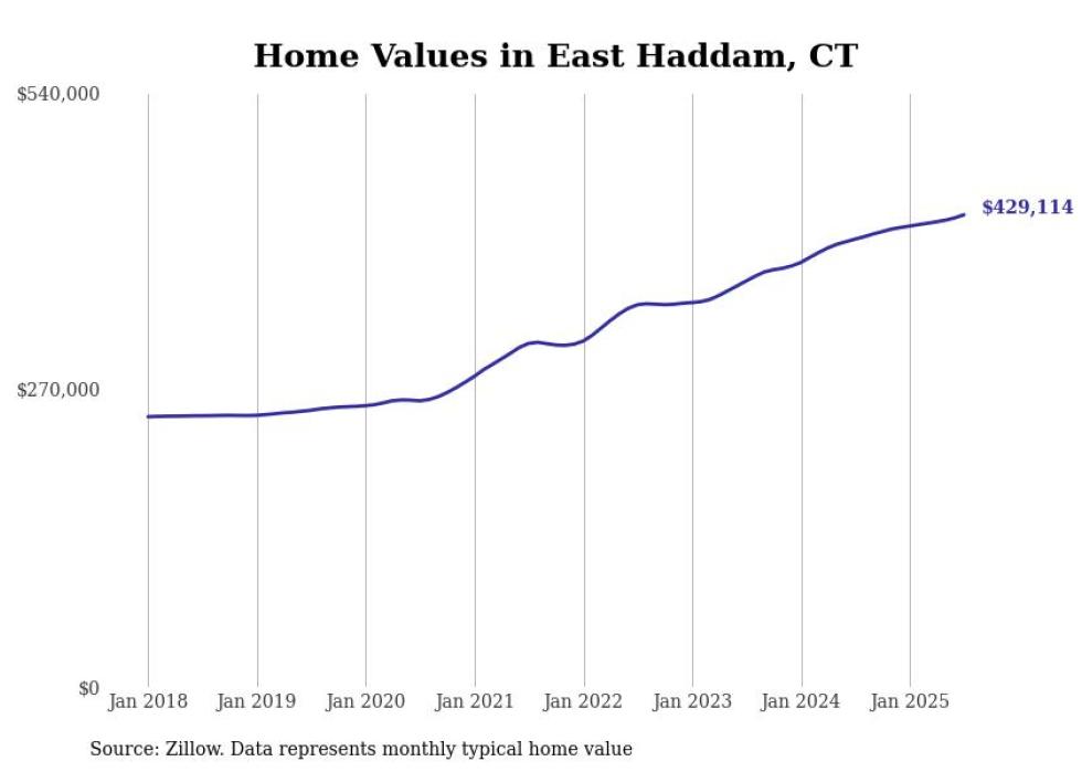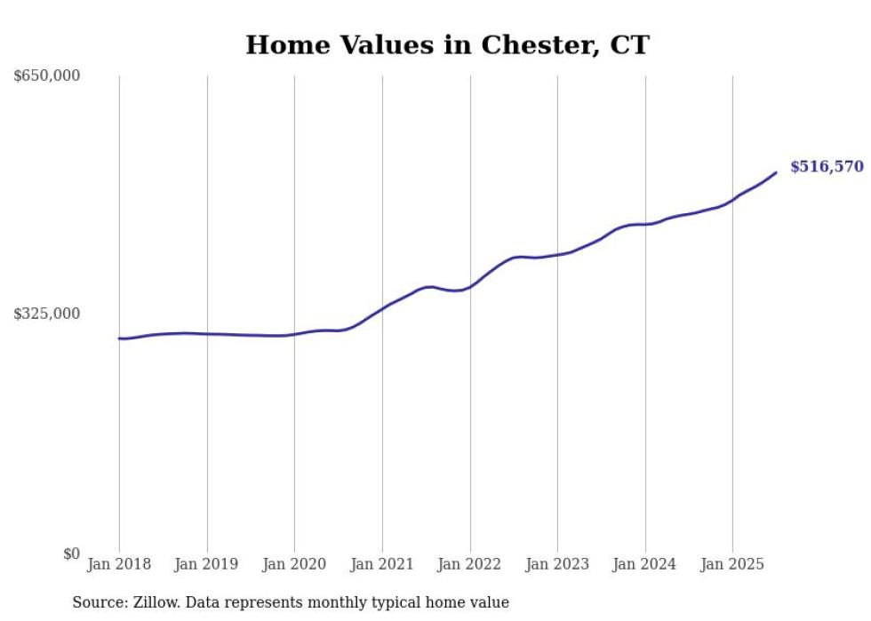 Stacker compiled a list of cities with the most expensive homes in the Hartford metro area using data from Zillow. Charts show the monthly typical home value since January 2018. Data was available for 59 cities and towns.