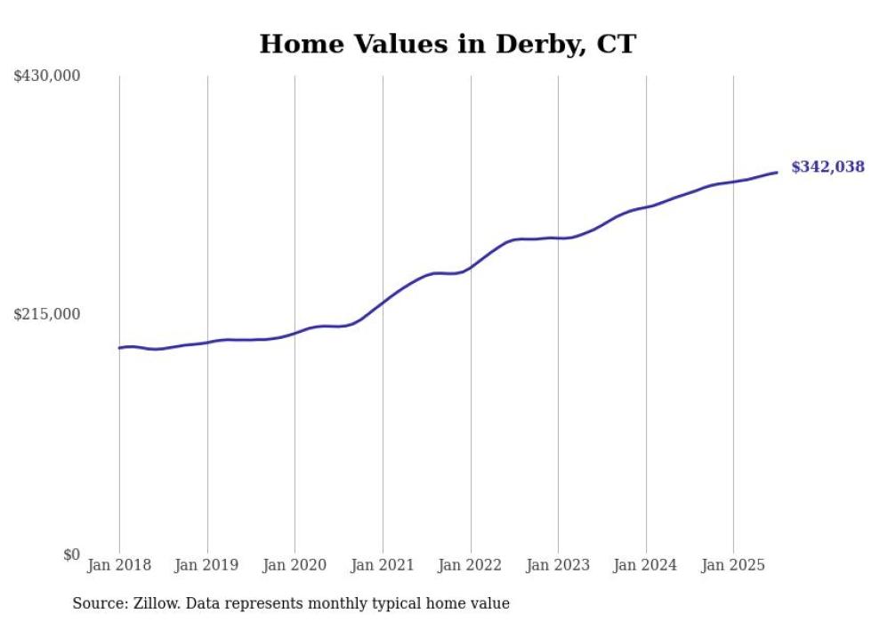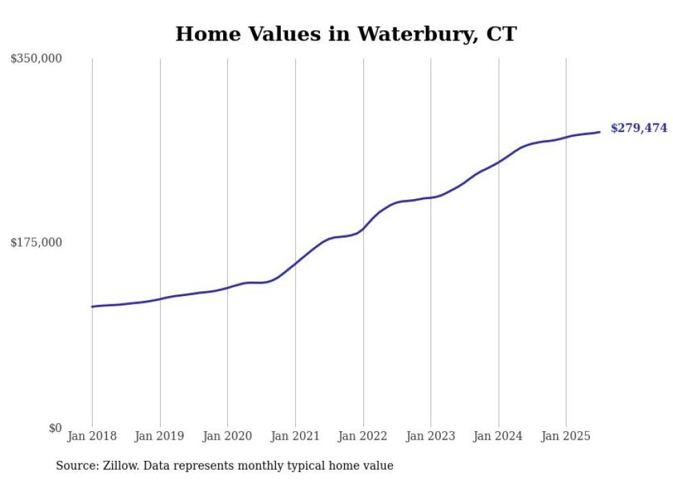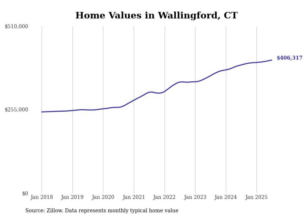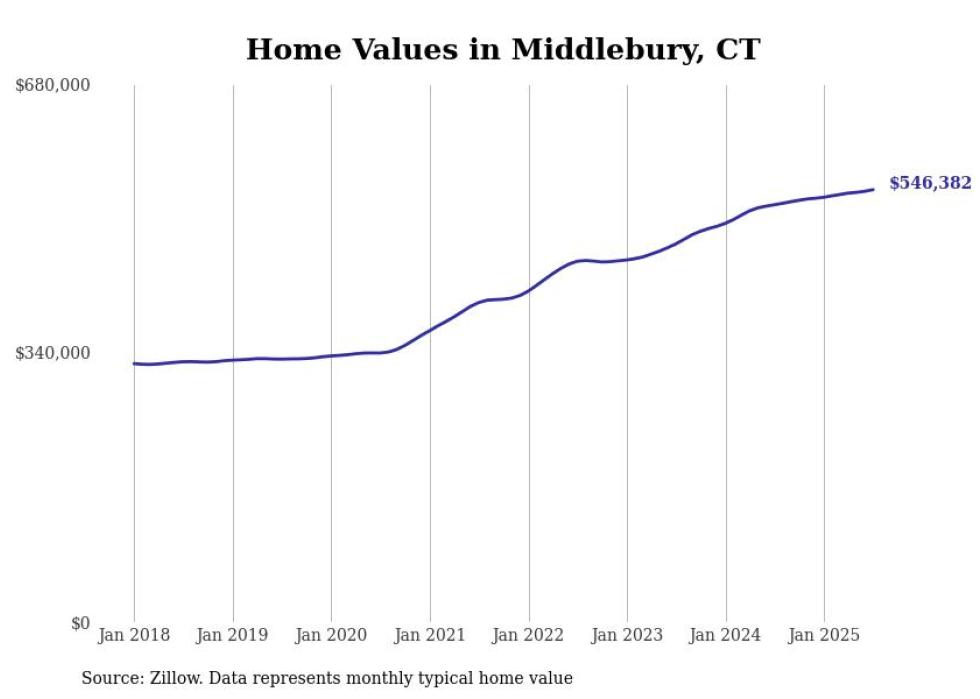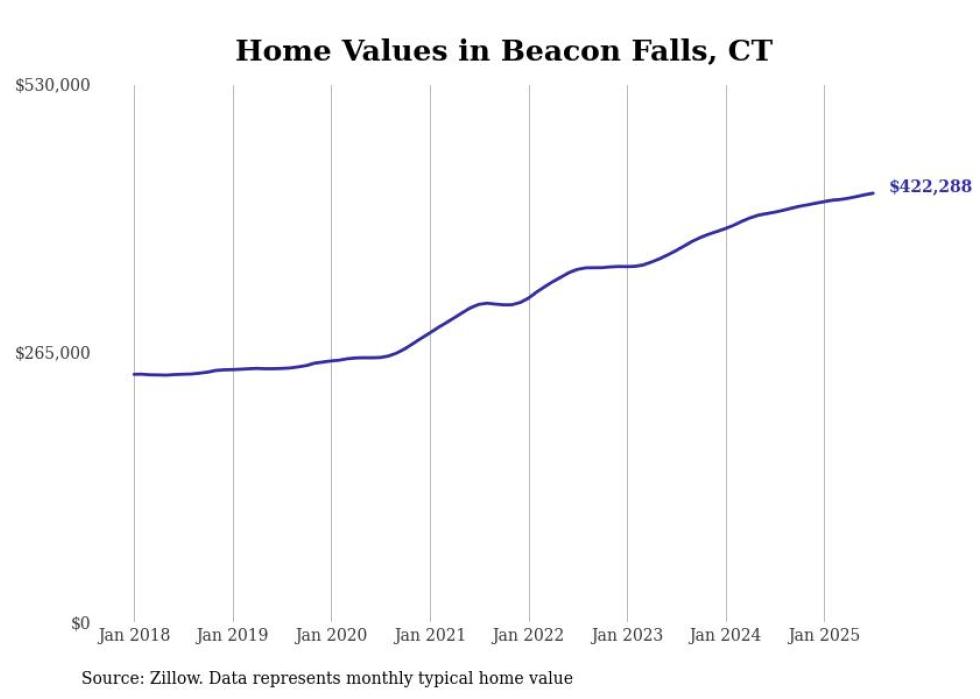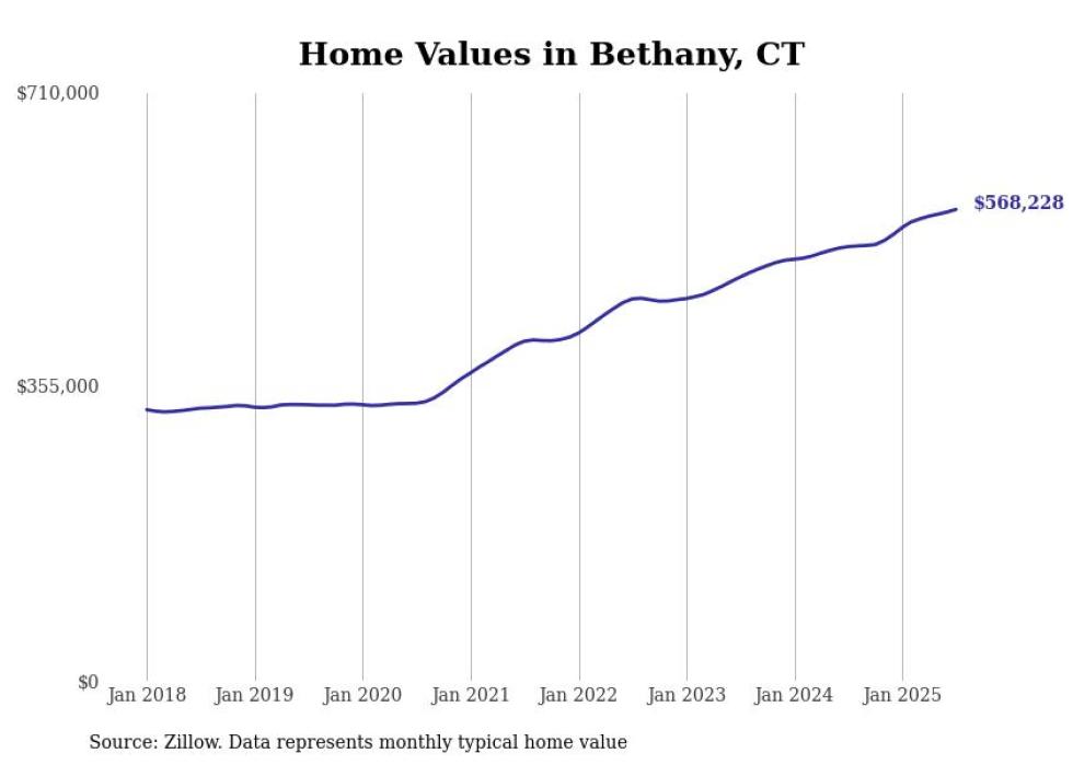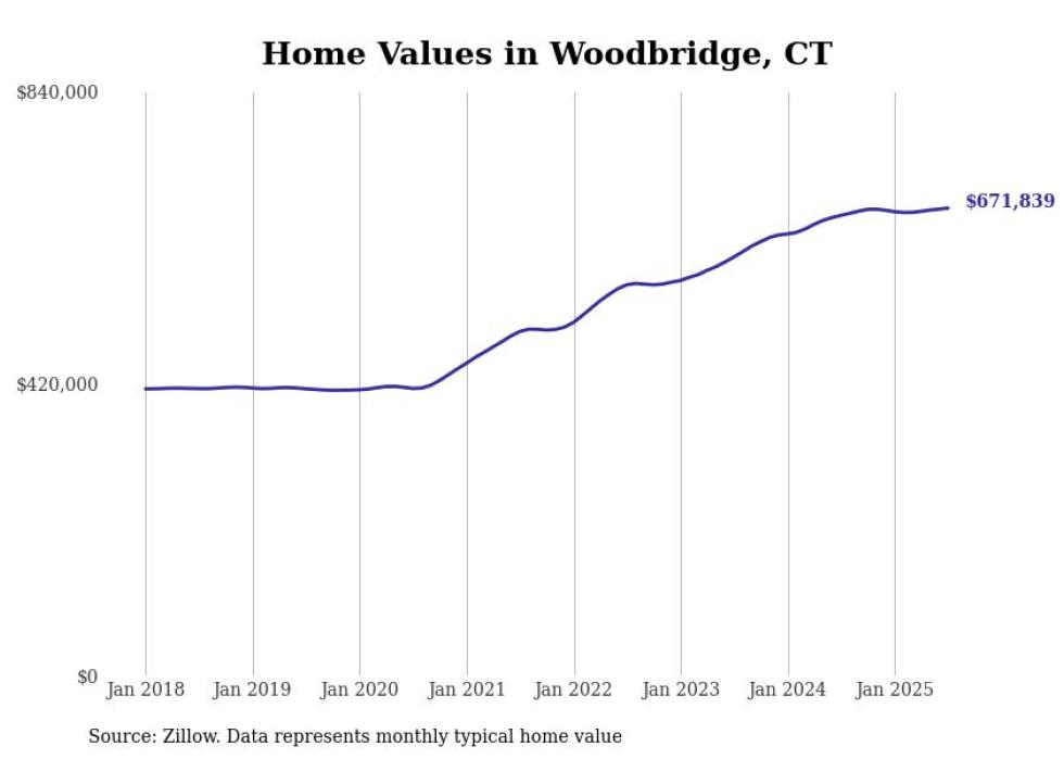 Stacker compiled a list of cities with the most expensive homes in the New Haven metro area using data from Zillow. Charts show the monthly typical home value since January 2018. All 27 cities and towns with data available were included in the list.