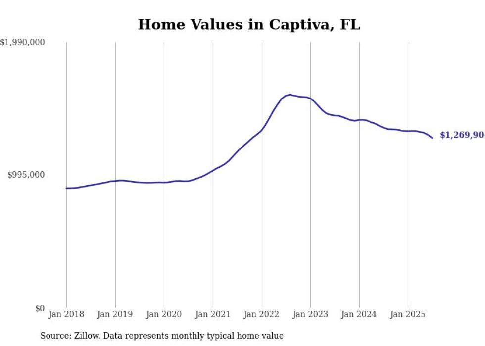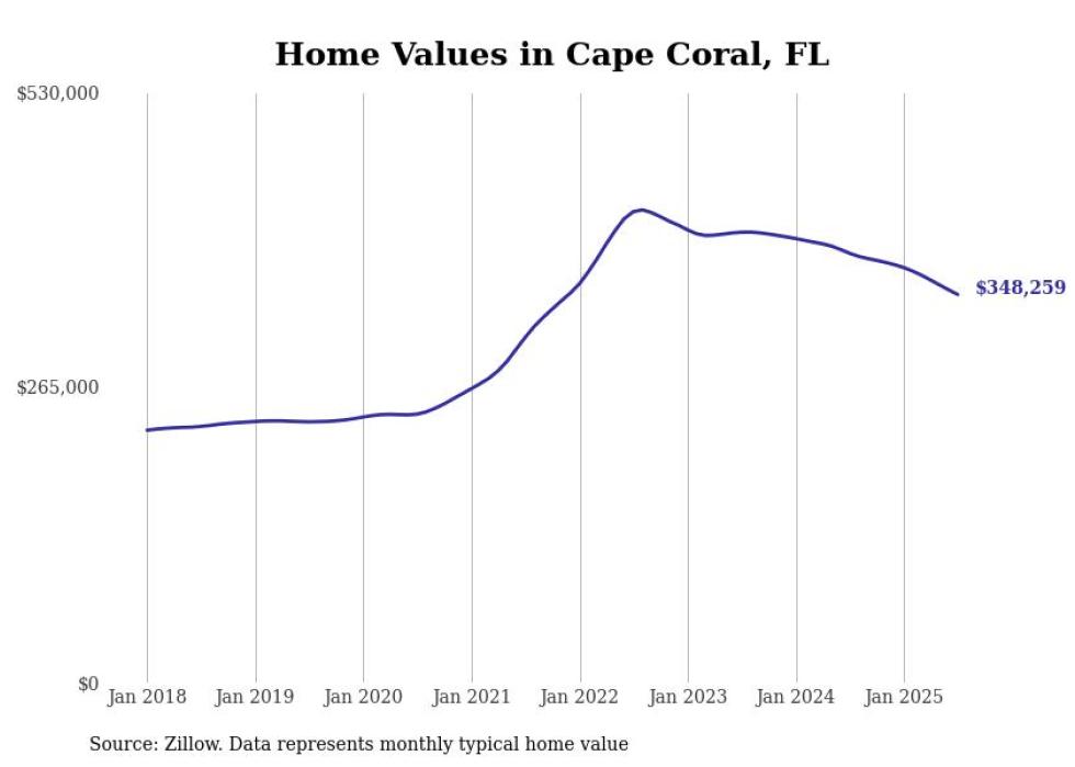 Stacker compiled a list of cities with the most expensive homes in the Cape Coral metro area using data from Zillow. Charts show the monthly typical home value since January 2018. All 14 cities and towns with data available were included in the list.