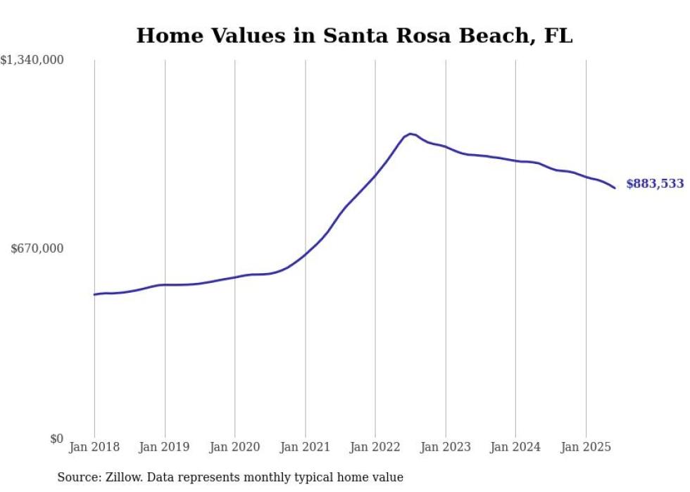 Stacker compiled a list of cities with the most expensive homes in the Crestview-Fort Walton Beach-Destin, FL metro area using data from Zillow. Charts show the monthly typical home value since January 2018.