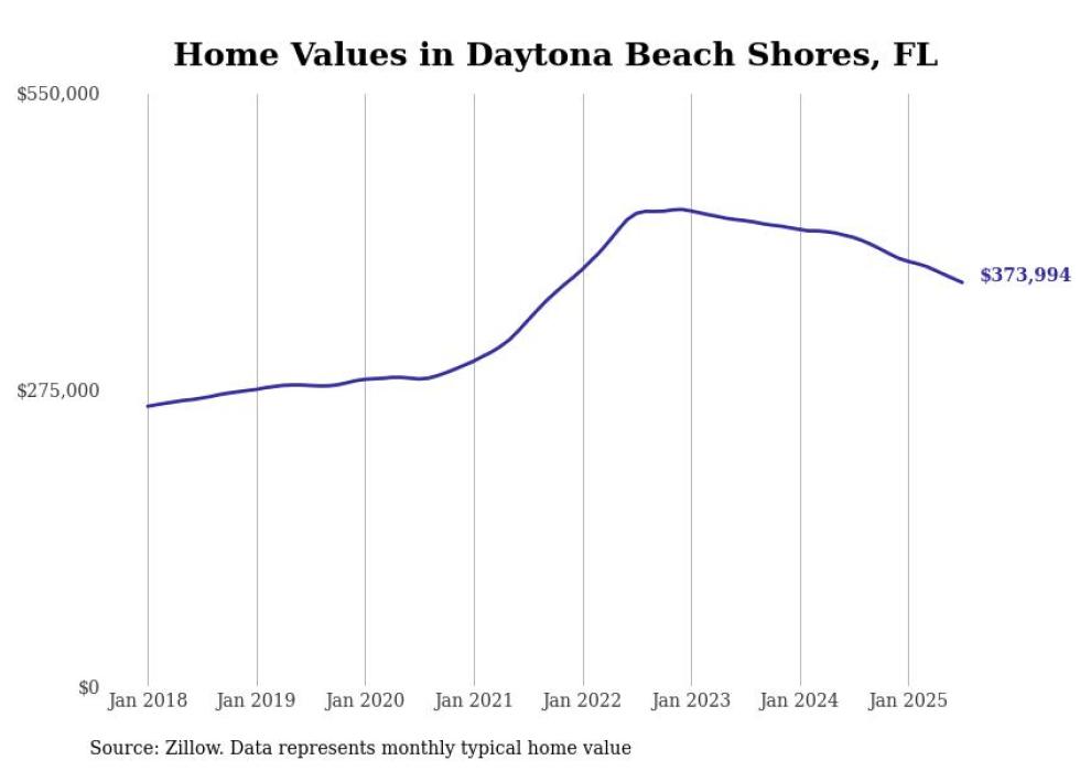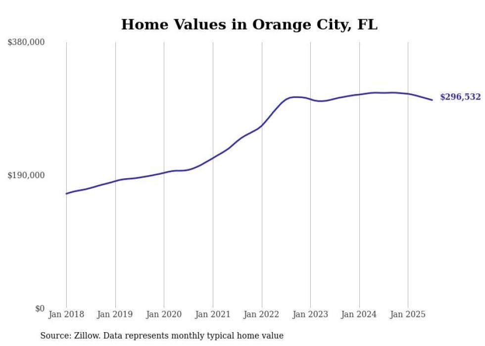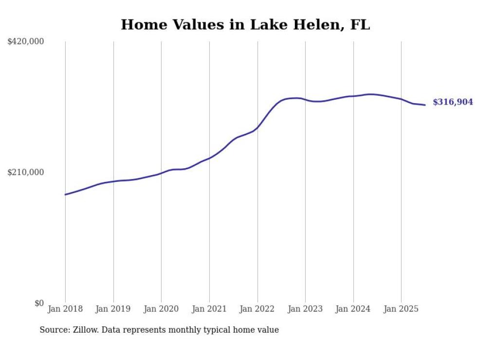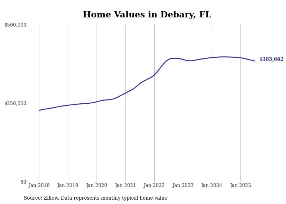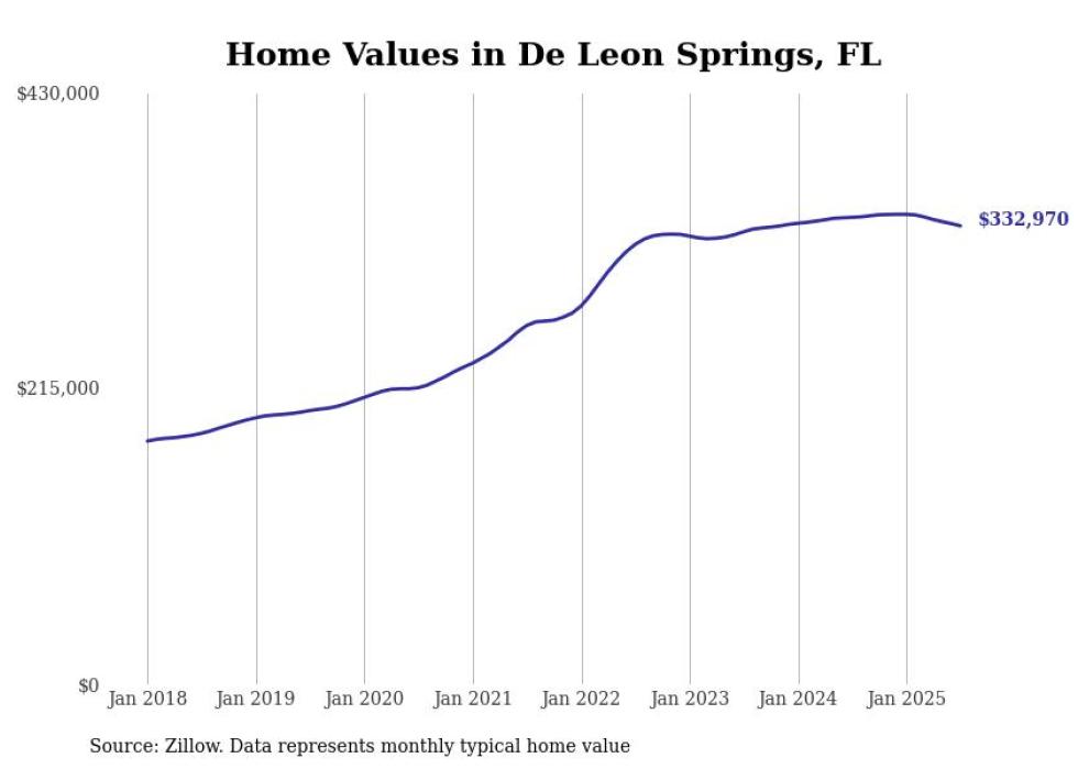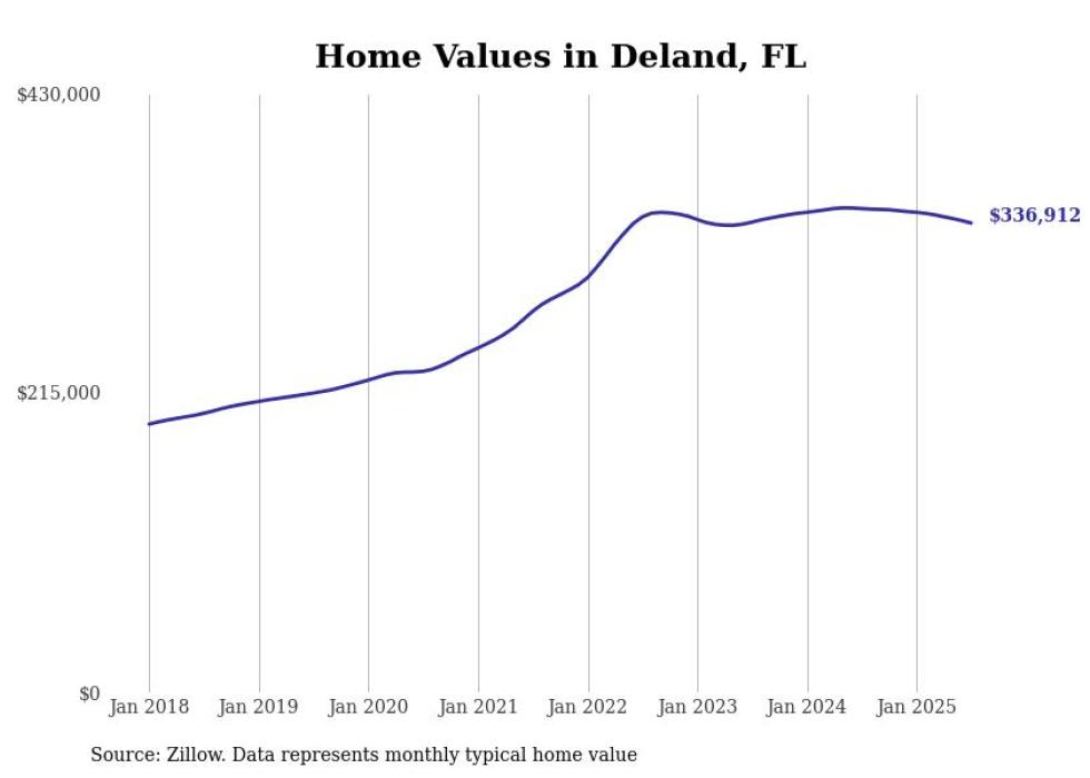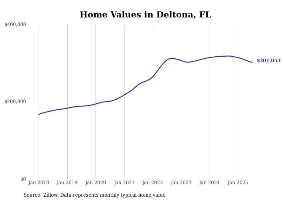 Stacker compiled a list of cities with the most expensive homes in the Deltona metro area using data from Zillow. Charts show the monthly typical home value since January 2018. All 22 cities and towns with data available were included in the list.