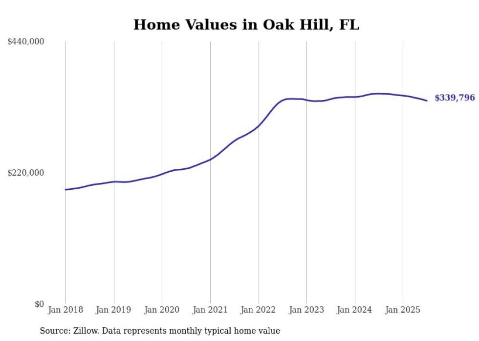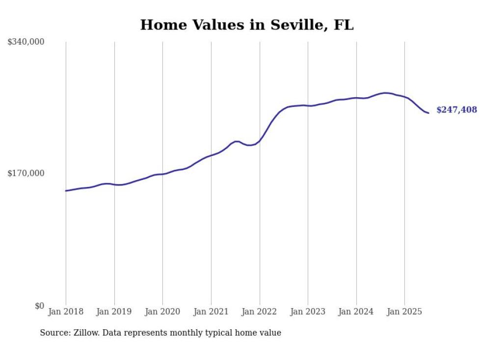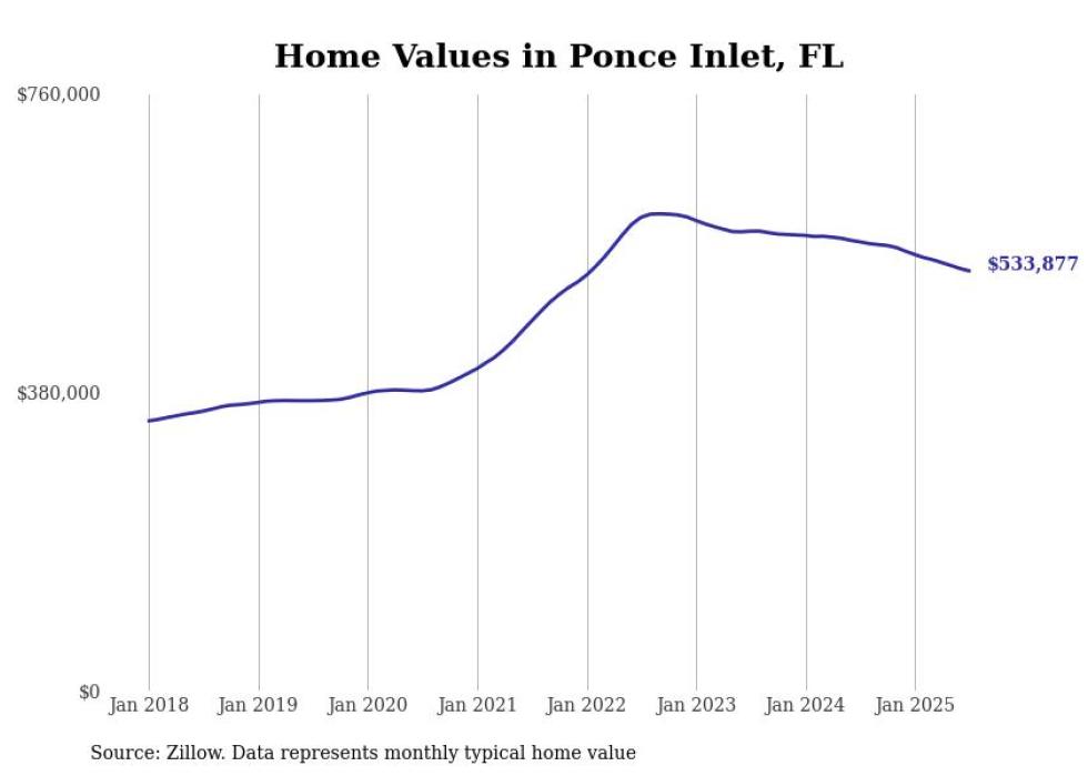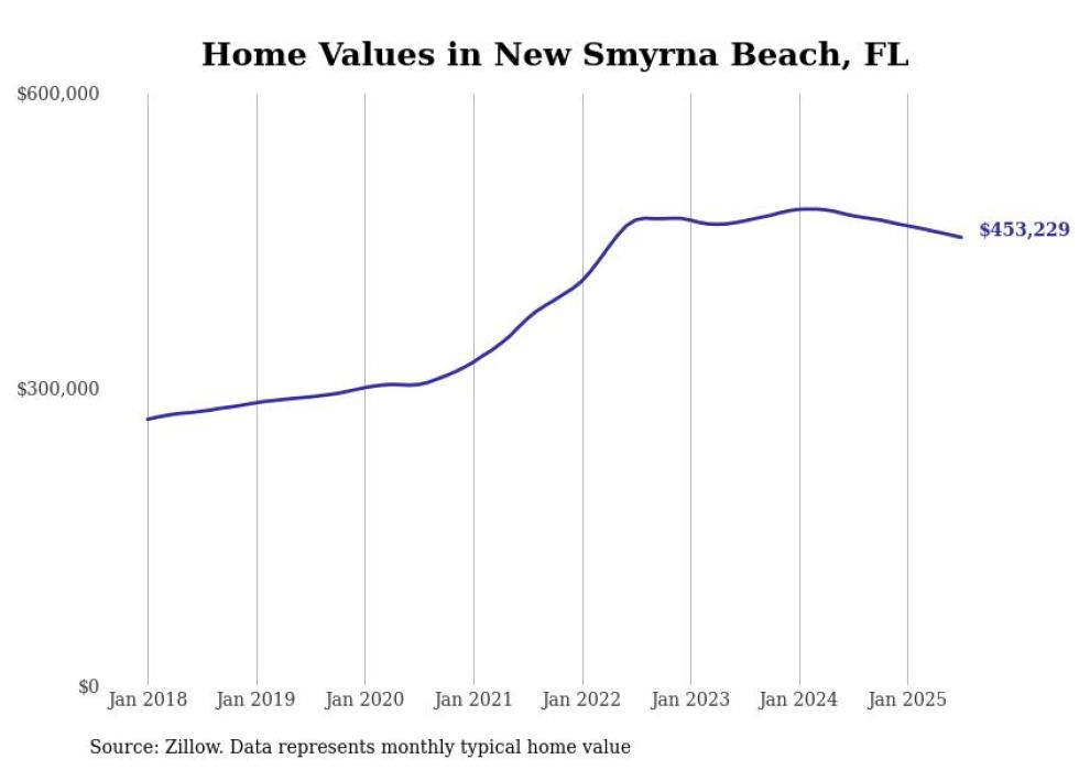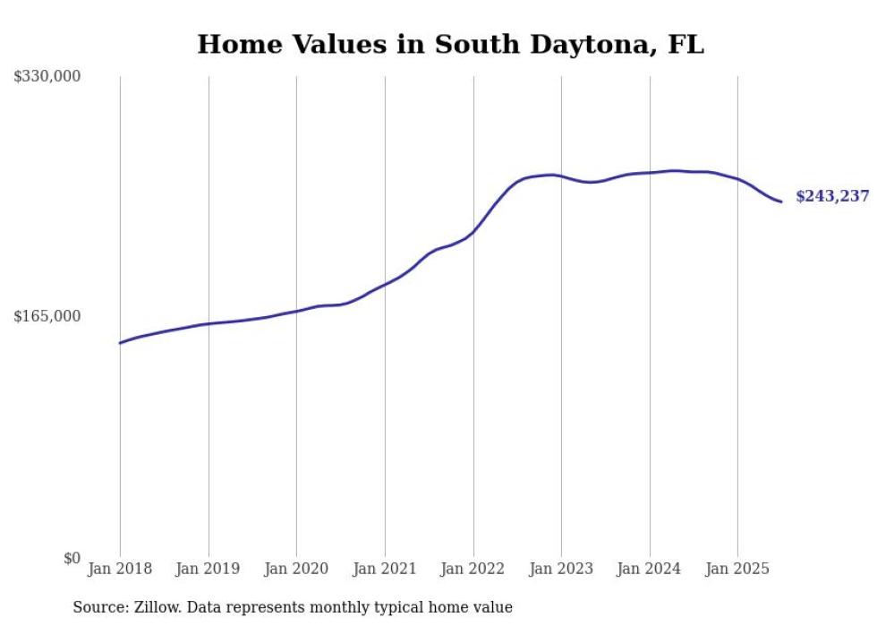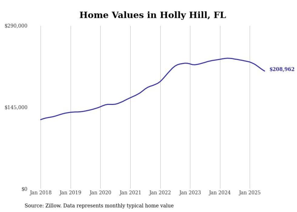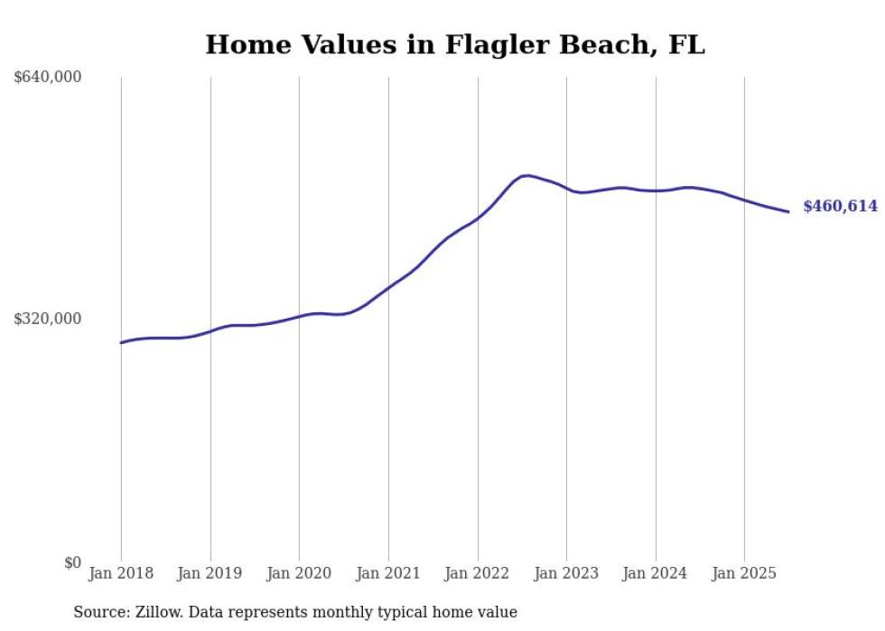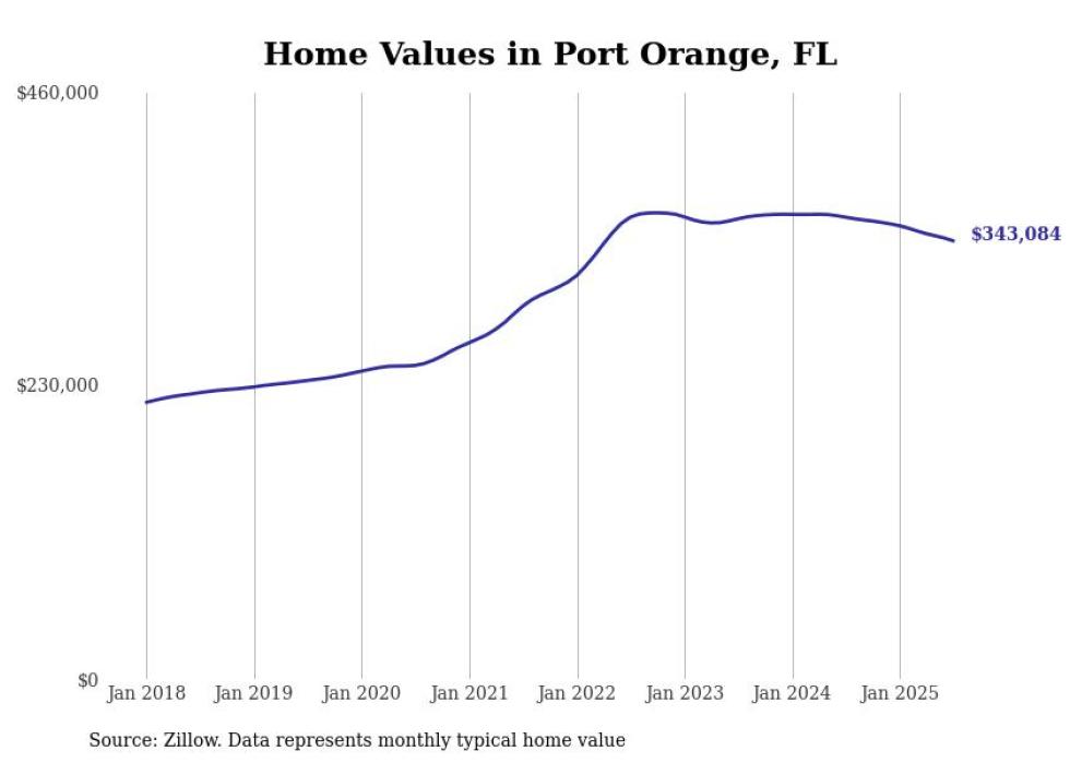 Stacker compiled a list of cities with the most expensive homes in the Deltona metro area using data from Zillow. Charts show the monthly typical home value since January 2018. All 22 cities and towns with data available were included in the list.