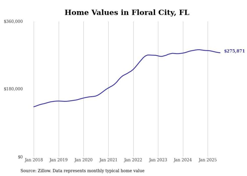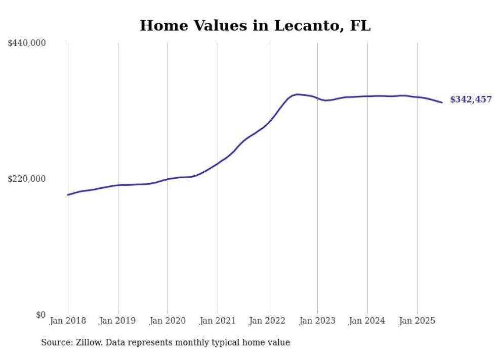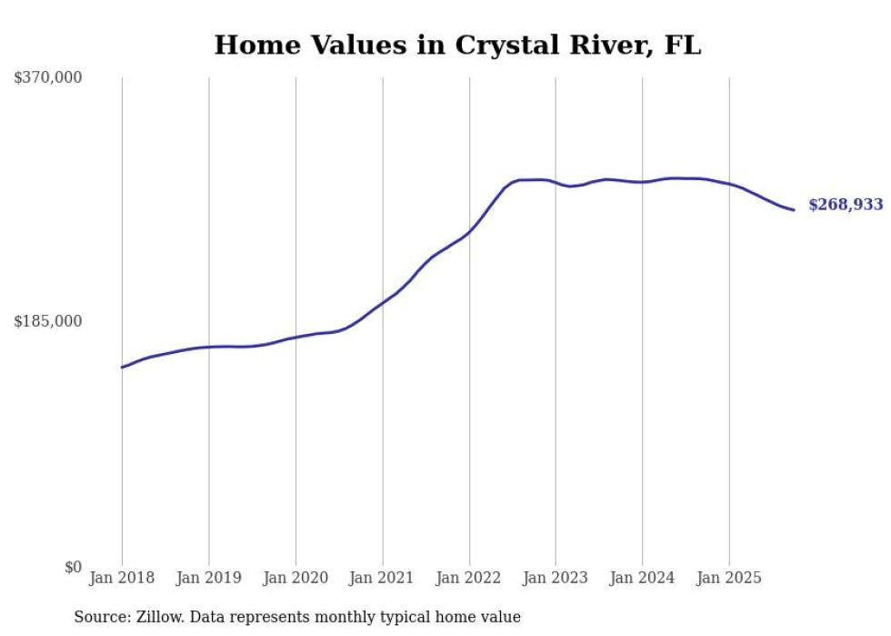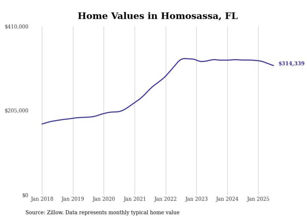 Stacker compiled a list of cities with the most expensive homes in the Homosassa Springs metro area using data from Zillow. Charts show the monthly typical home value since January 2018. All 7 cities and towns with data available were included in the list.