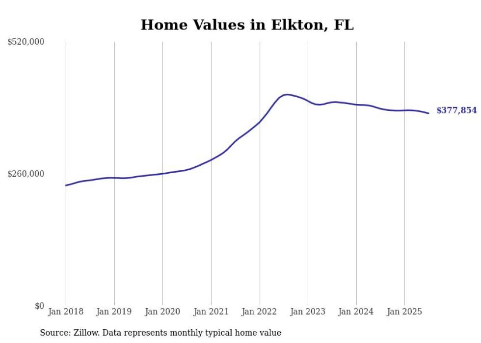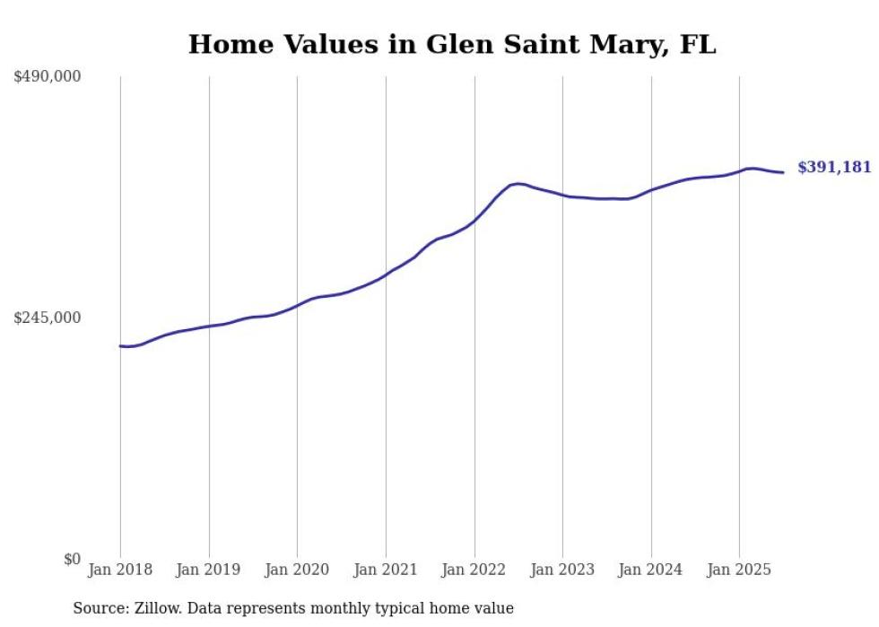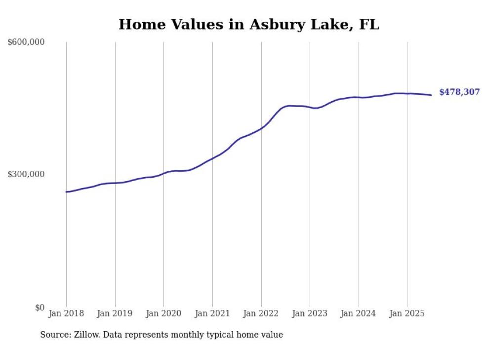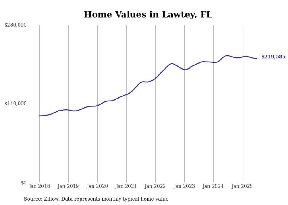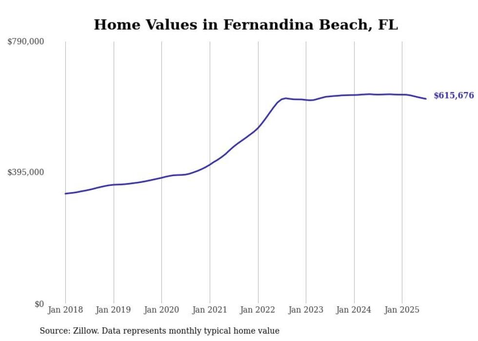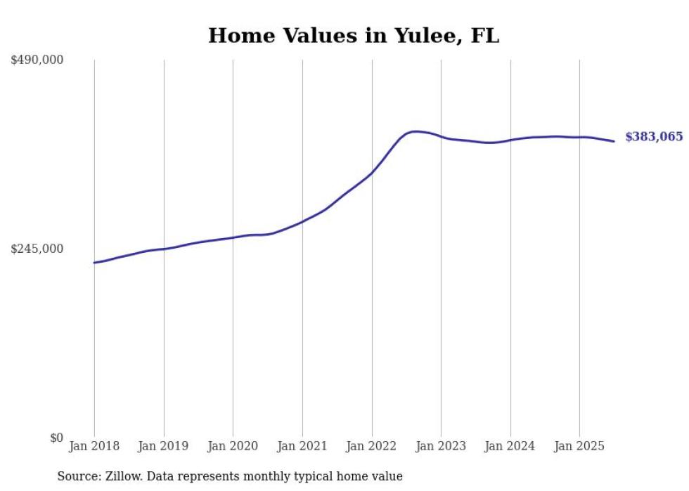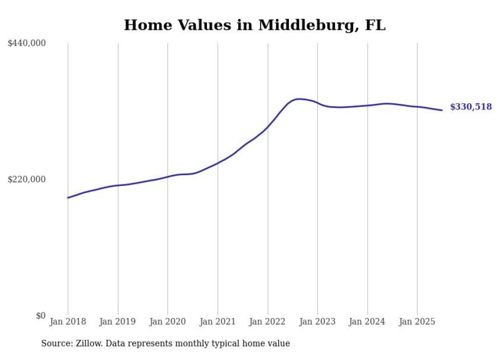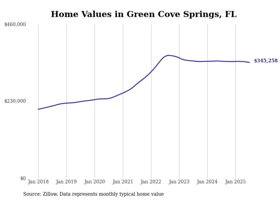 Stacker compiled a list of cities with the most expensive homes in the Jacksonville metro area using data from Zillow. Charts show the monthly typical home value since January 2018. All 27 cities and towns with data available were included in the list.