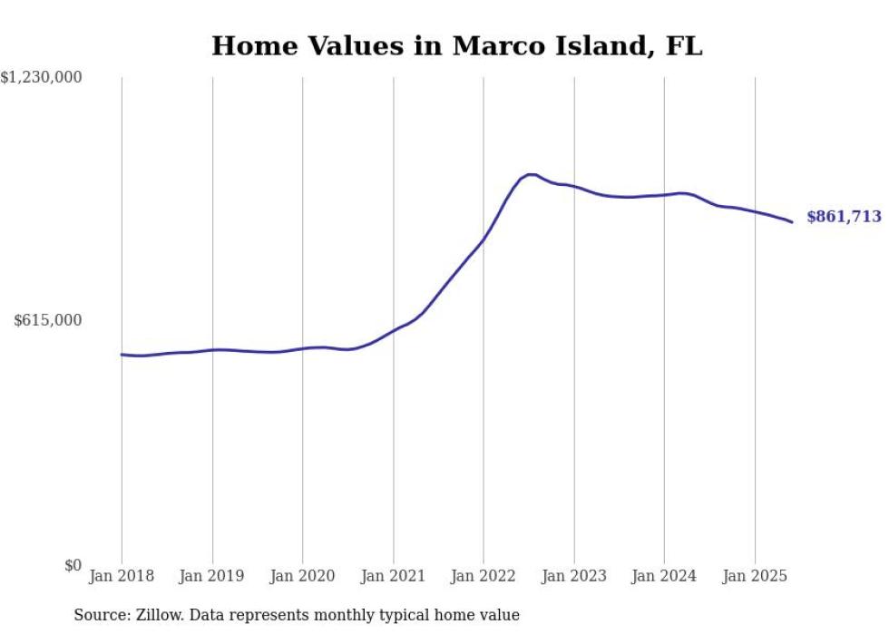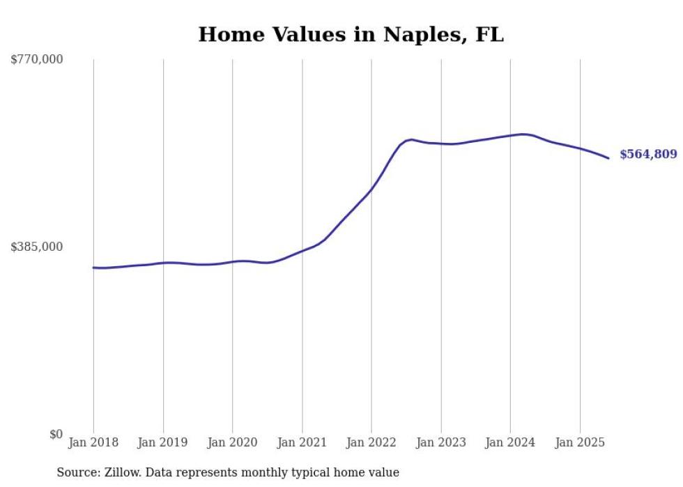 Stacker compiled a list of cities with the most expensive homes in the Naples-Marco Island, FL metro area using data from Zillow. Charts show the monthly typical home value since January 2018.