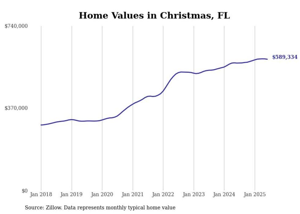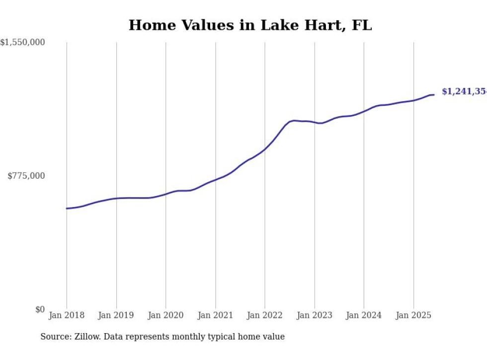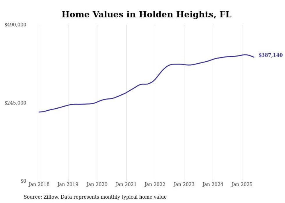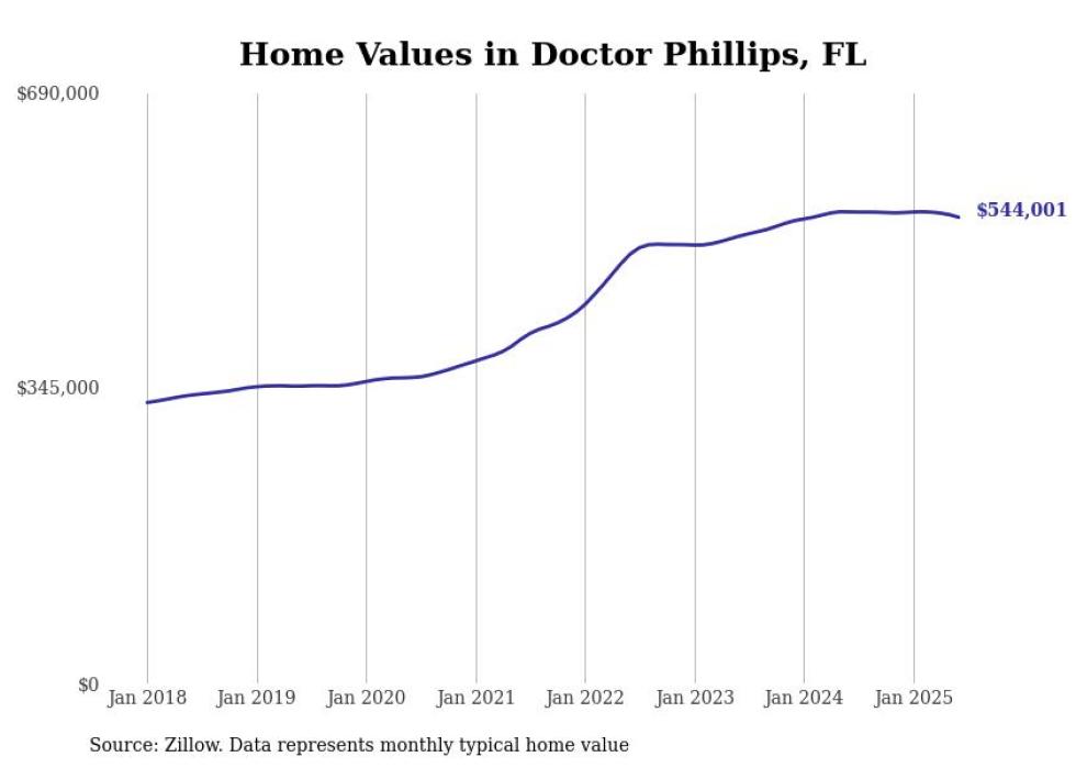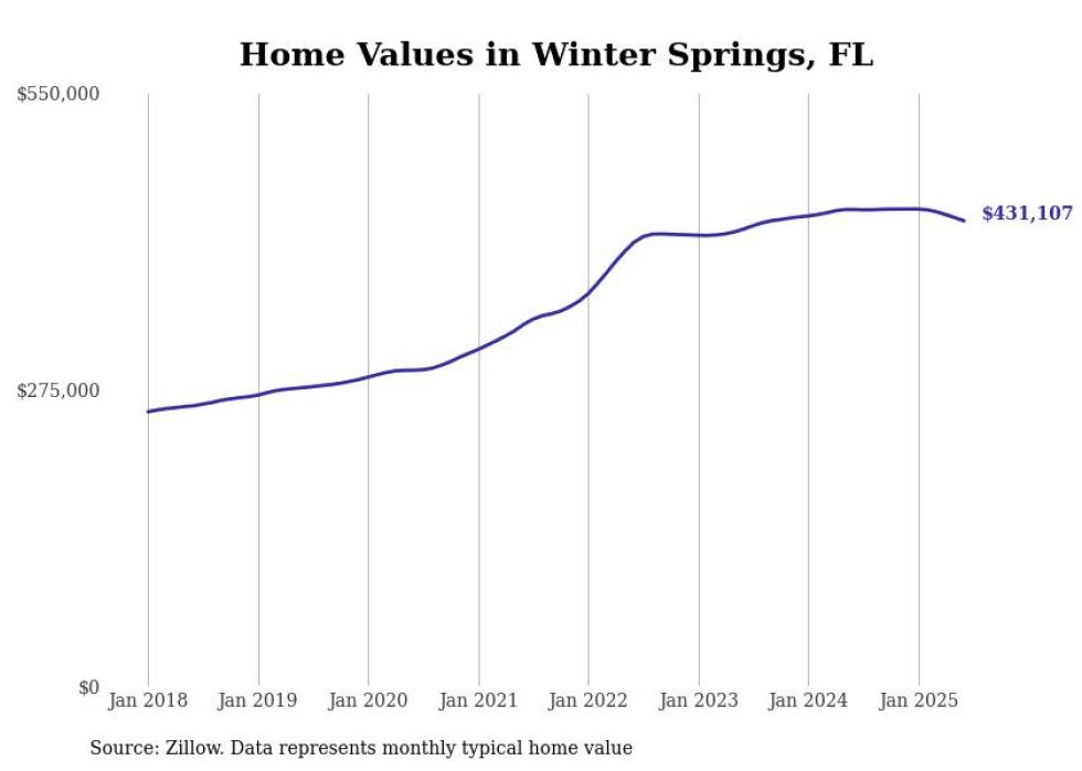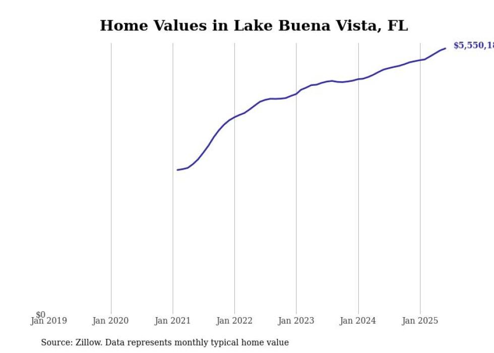Stacker compiled a list of cities with the most expensive homes in the Orlando-Kissimmee-Sanford, FL metro area using data from Zillow. Charts show the monthly typical home value since January 2018.