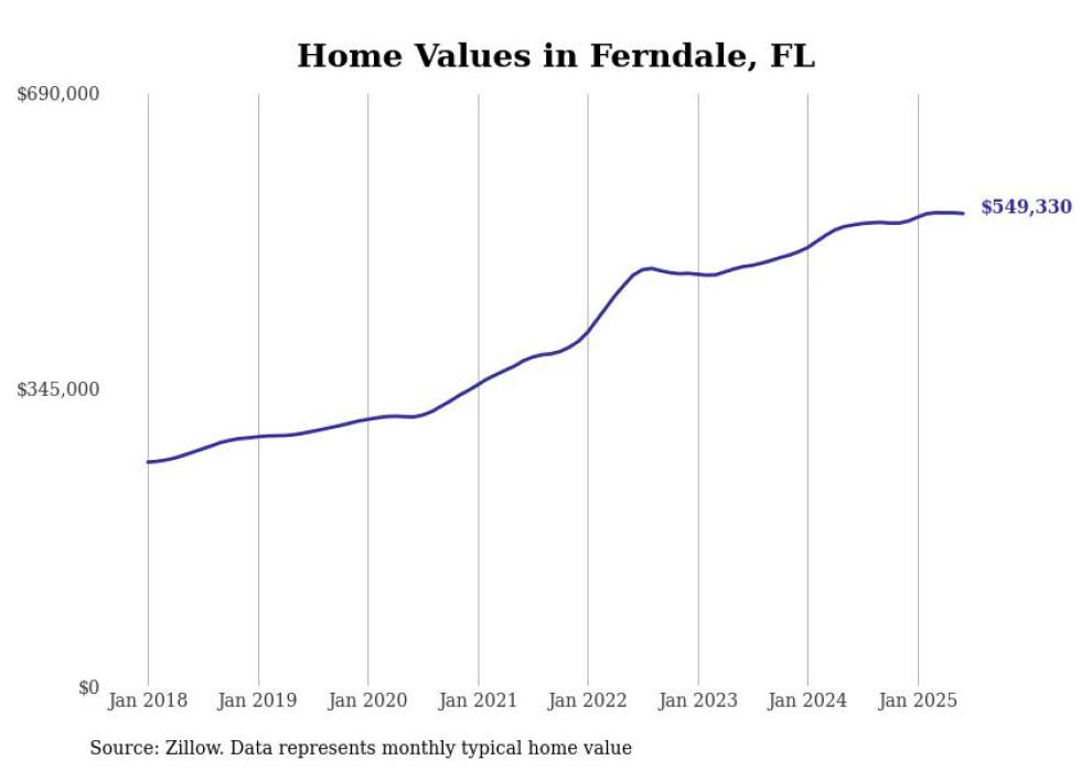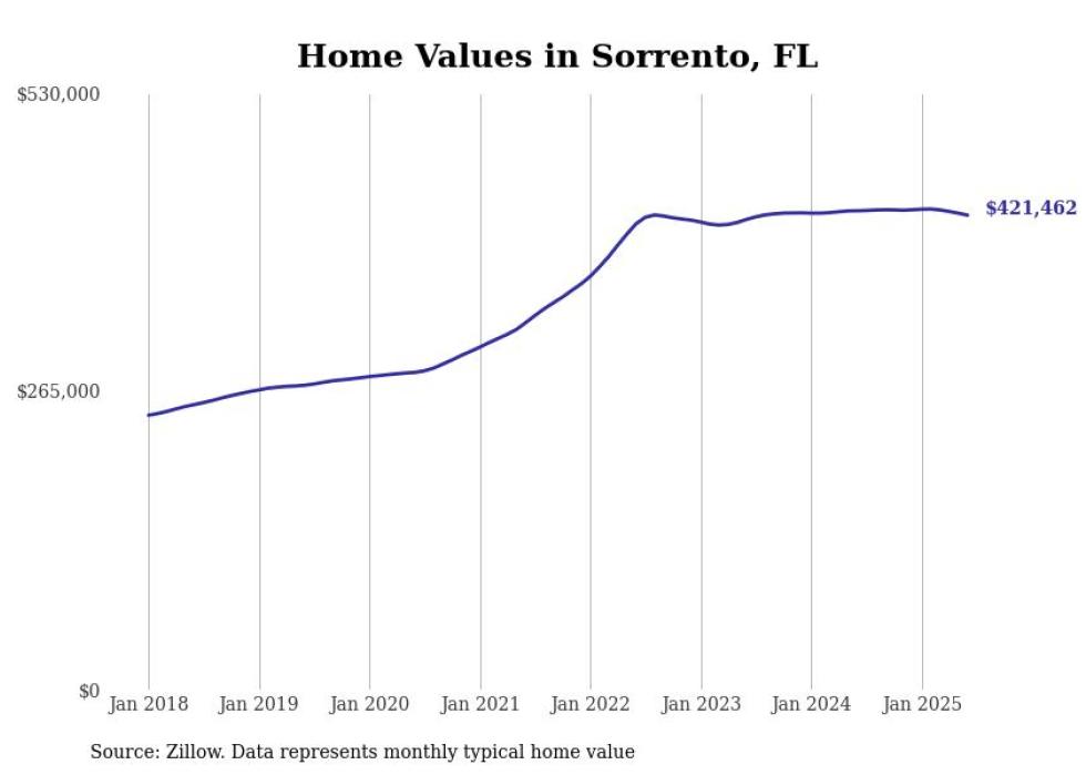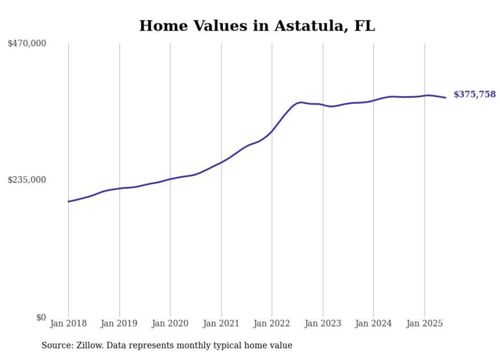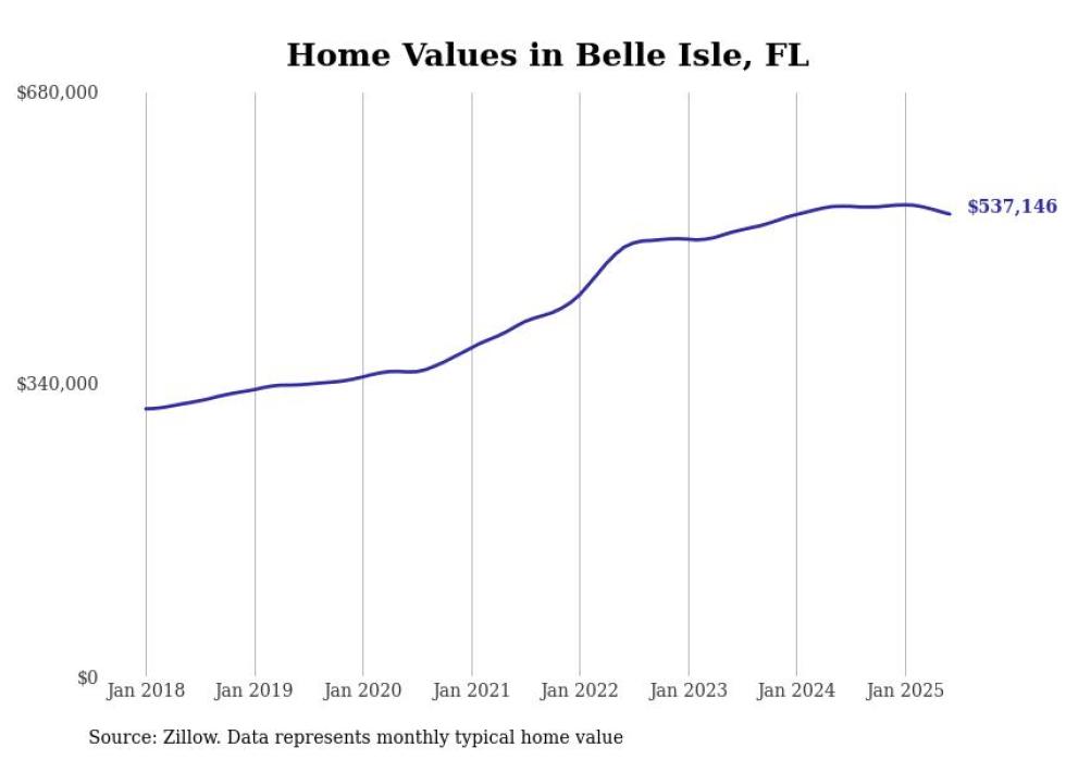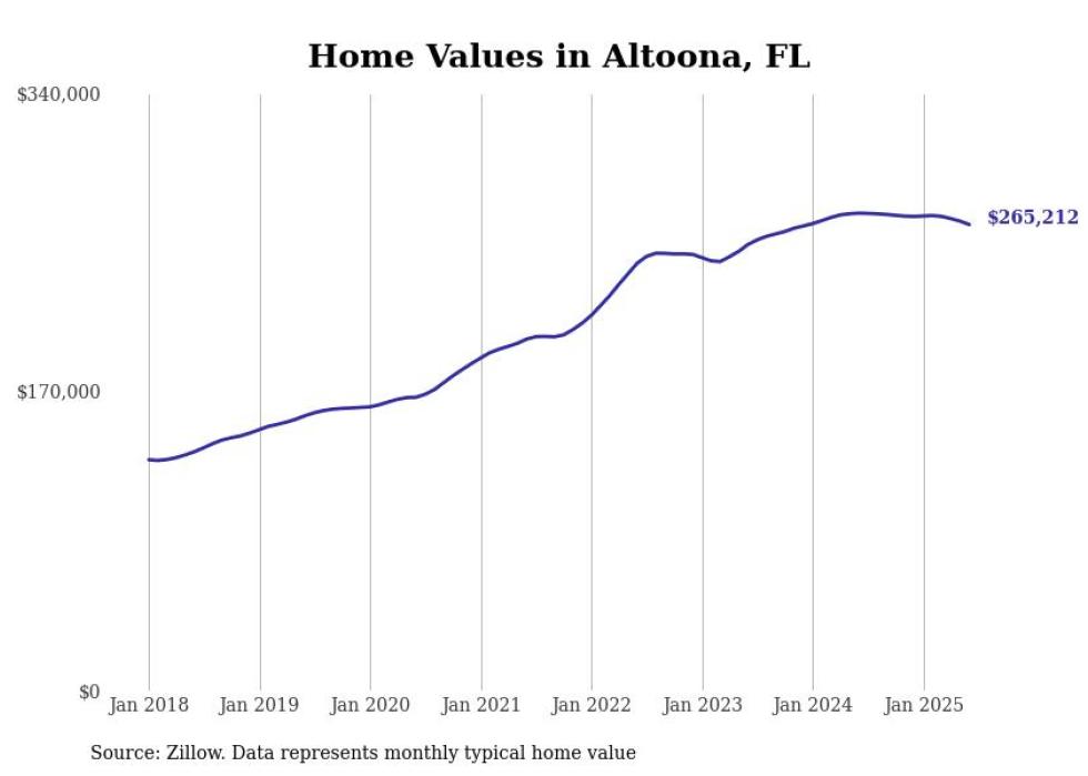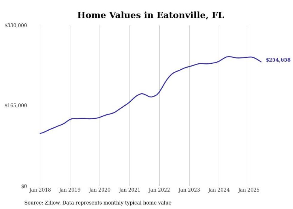 Stacker compiled a list of cities with the most expensive homes in the Orlando-Kissimmee-Sanford, FL metro area using data from Zillow. Charts show the monthly typical home value since January 2018.