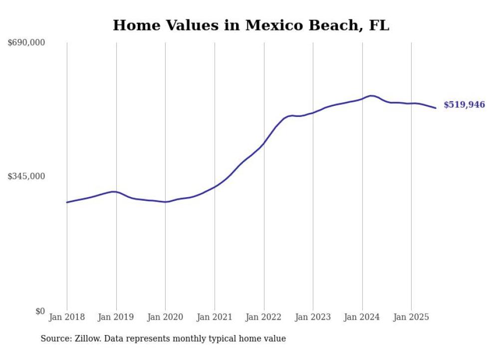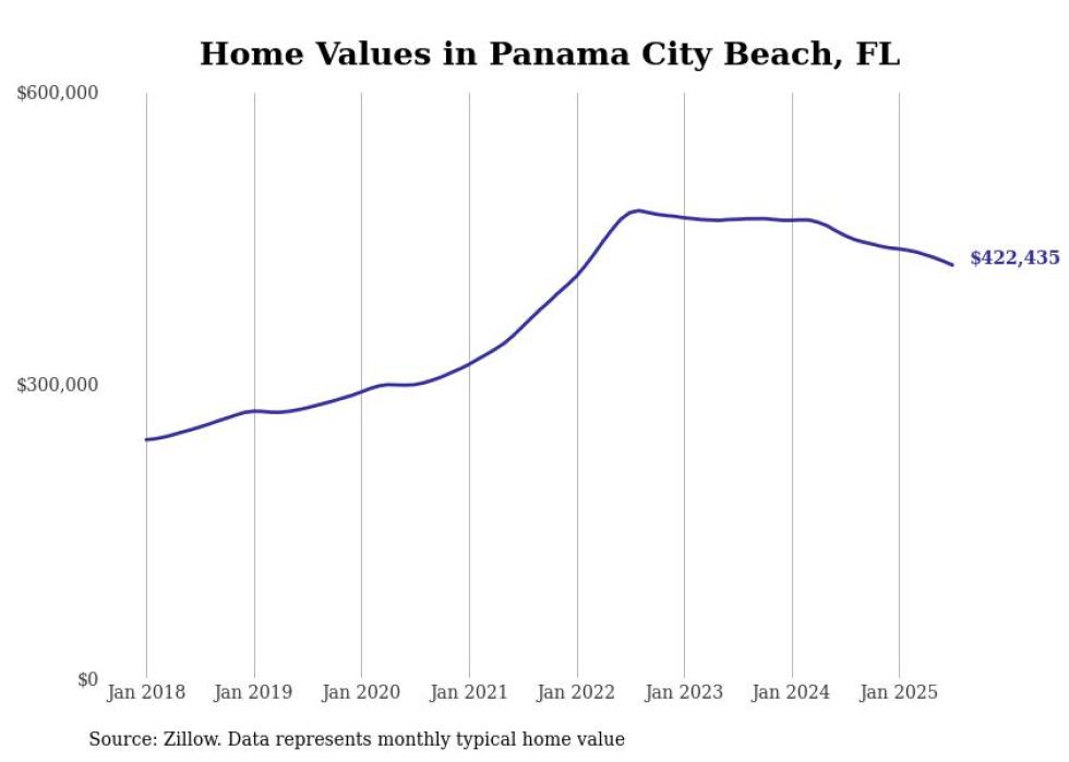 Stacker compiled a list of cities with the most expensive homes in the Panama City metro area using data from Zillow. Charts show the monthly typical home value since January 2018. All 10 cities and towns with data available were included in the list.