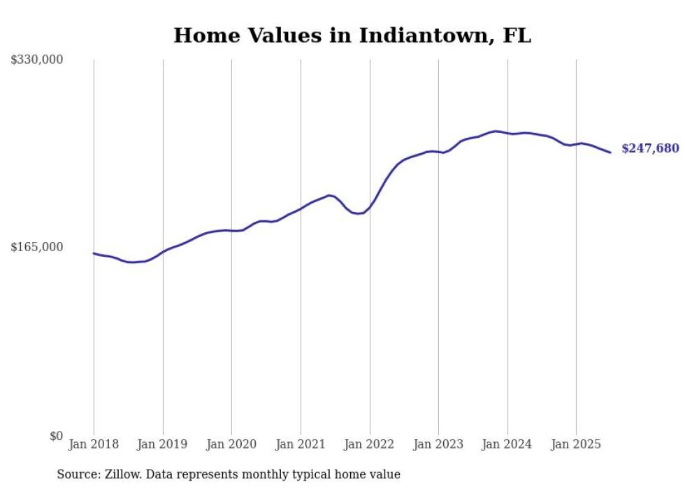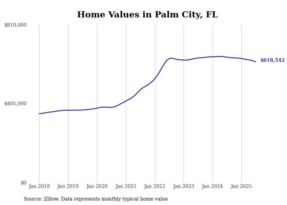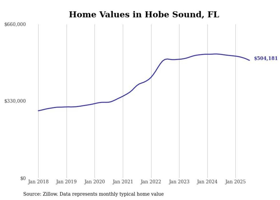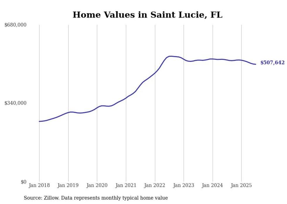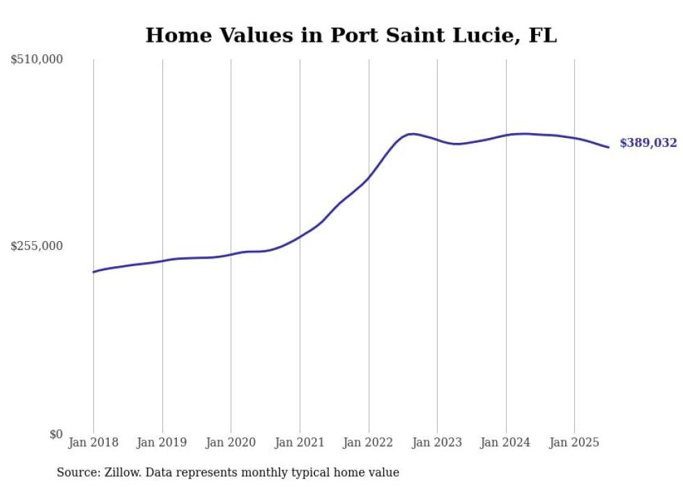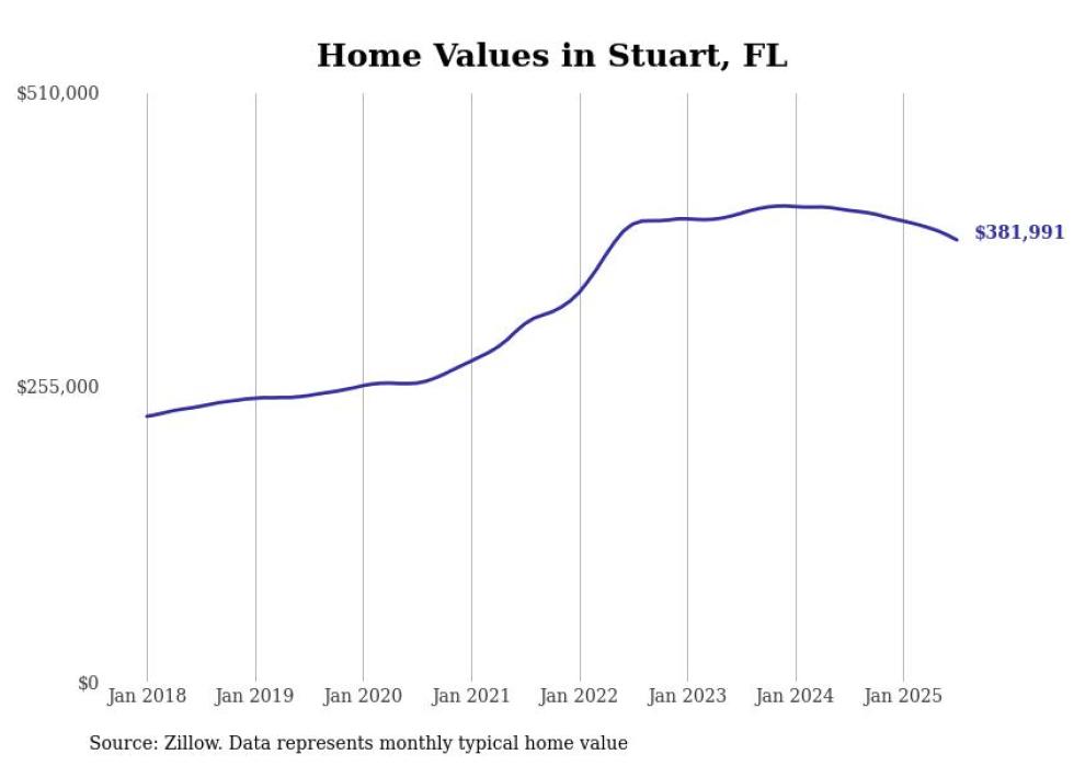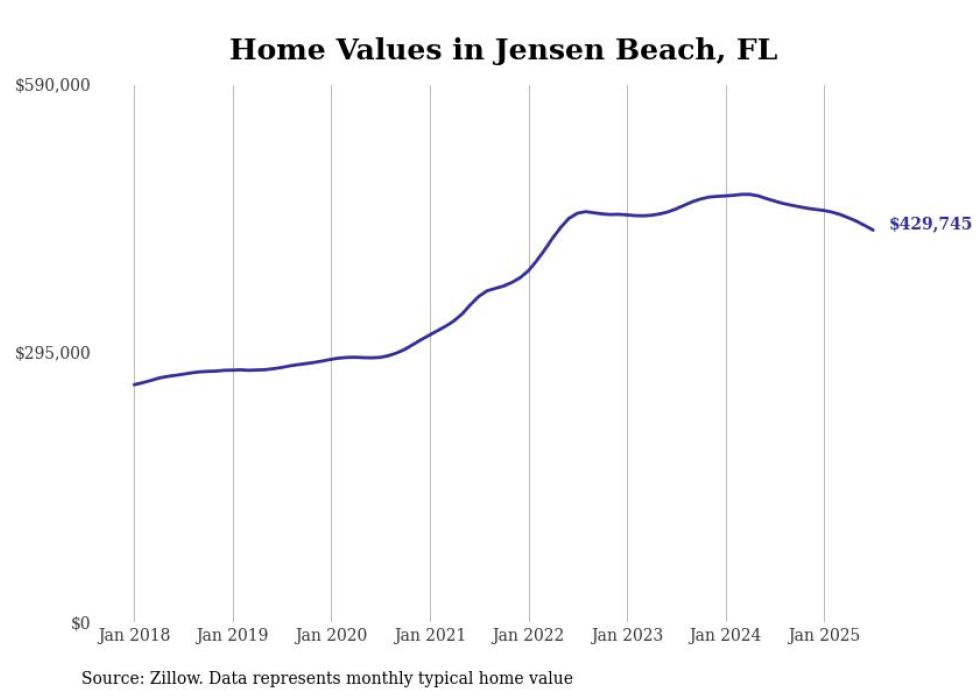 Stacker compiled a list of cities with the most expensive homes in the Port St. Lucie metro area using data from Zillow. Charts show the monthly typical home value since January 2018. All 10 cities and towns with data available were included in the list.