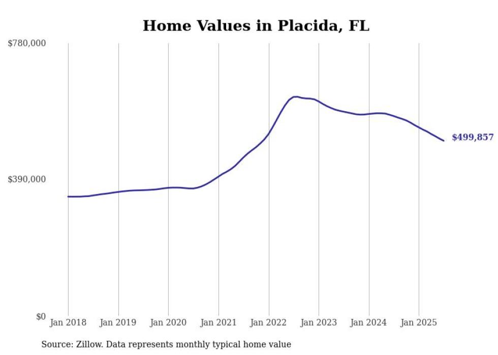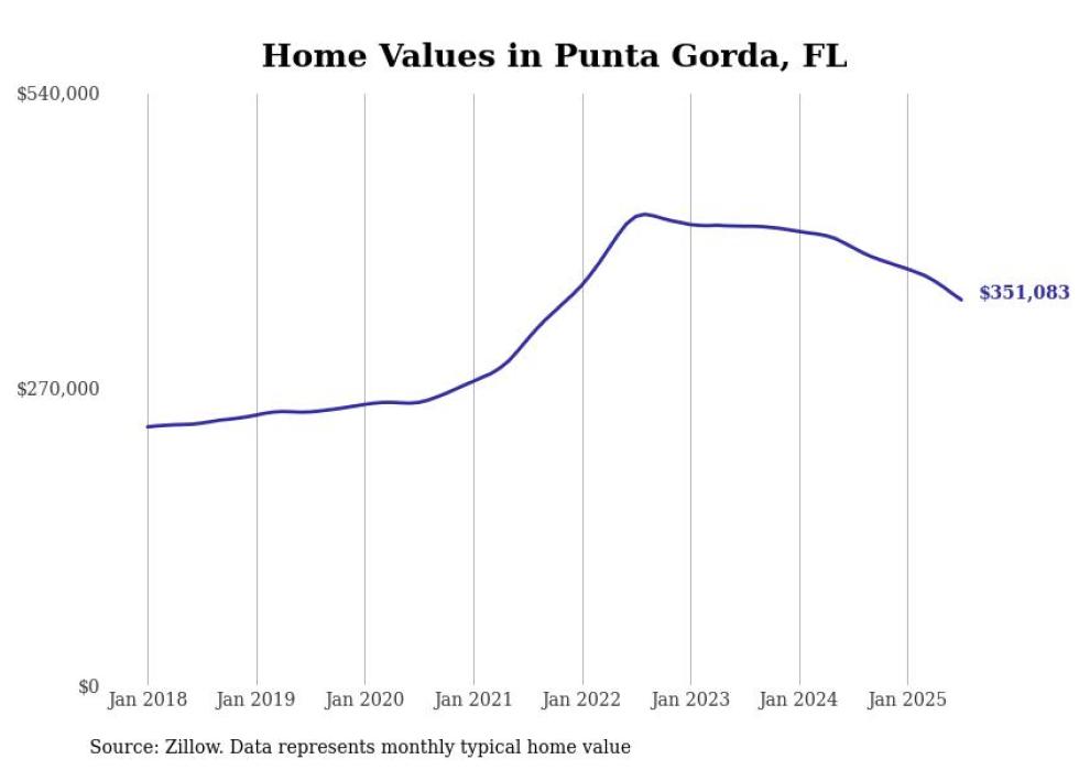 Stacker compiled a list of cities with the most expensive homes in the Punta Gorda metro area using data from Zillow. Charts show the monthly typical home value since January 2018. All 4 cities and towns with data available were included in the list.