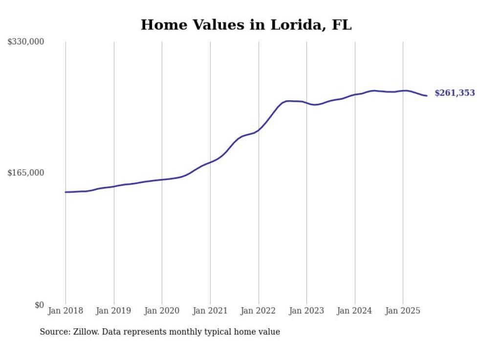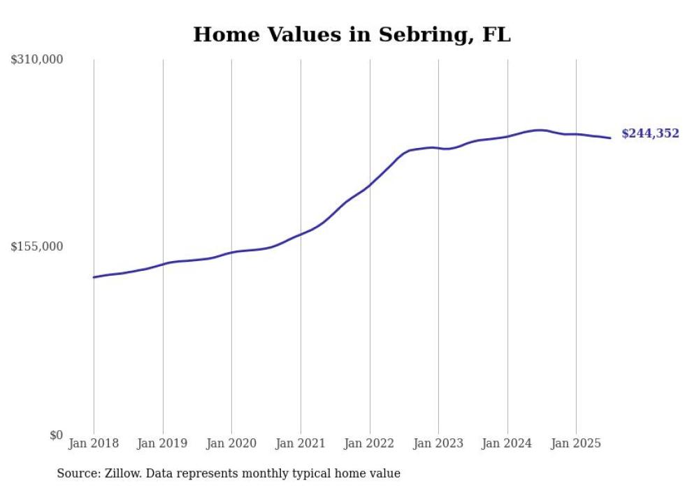 Stacker compiled a list of cities with the most expensive homes in the Sebring metro area using data from Zillow. Charts show the monthly typical home value since January 2018. All 5 cities and towns with data available were included in the list.